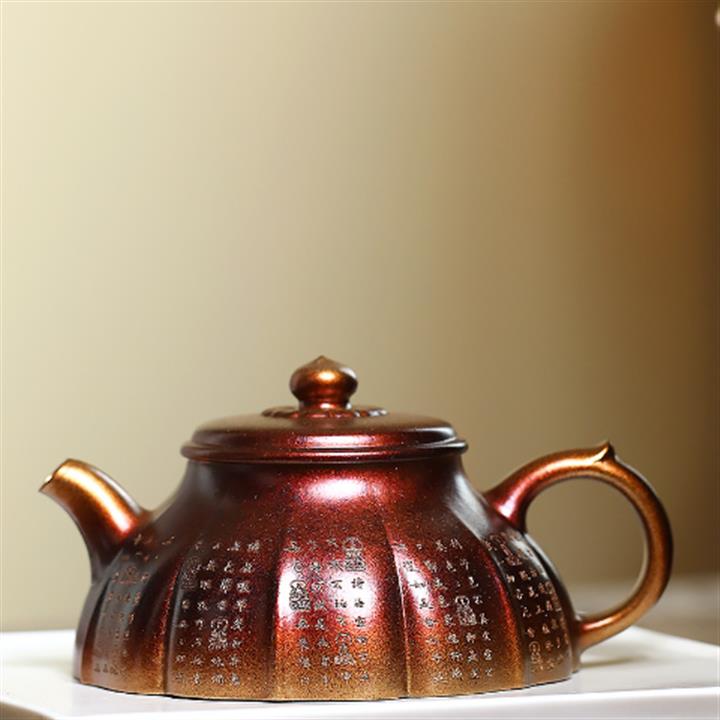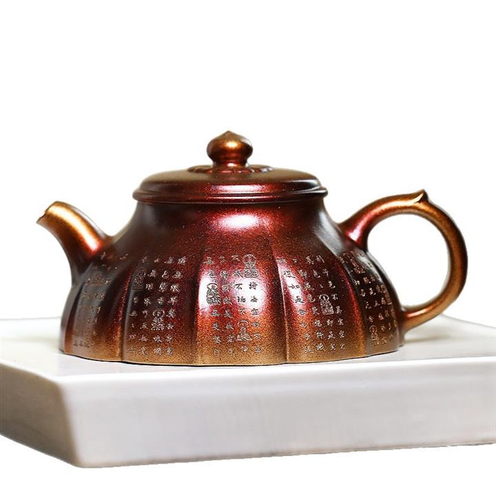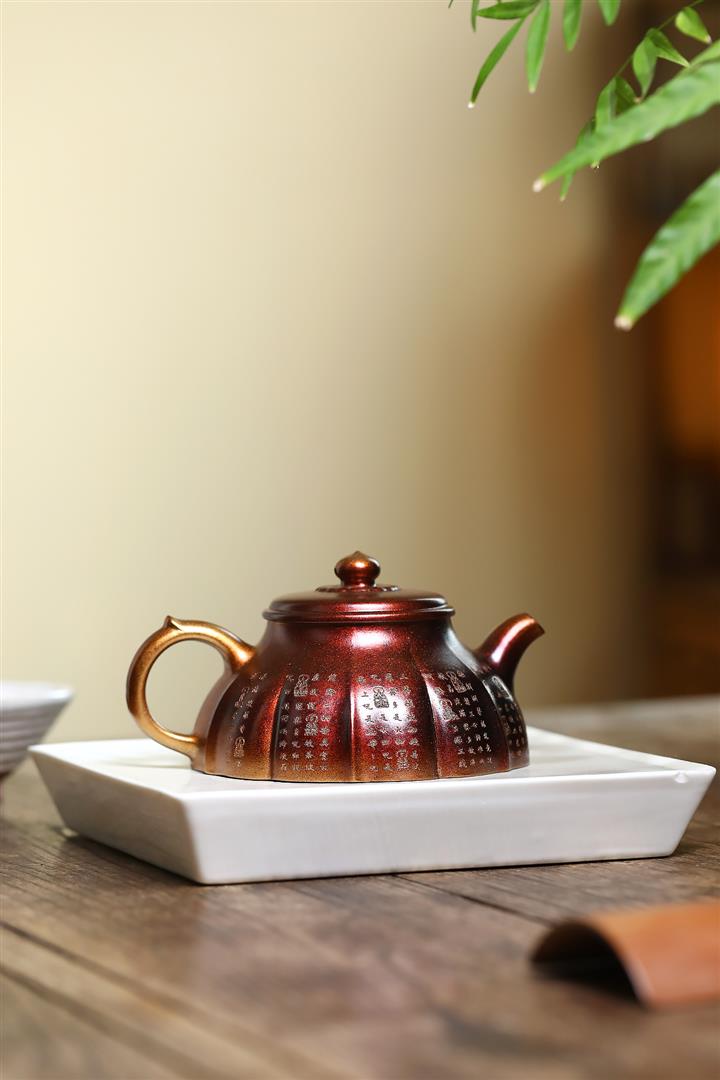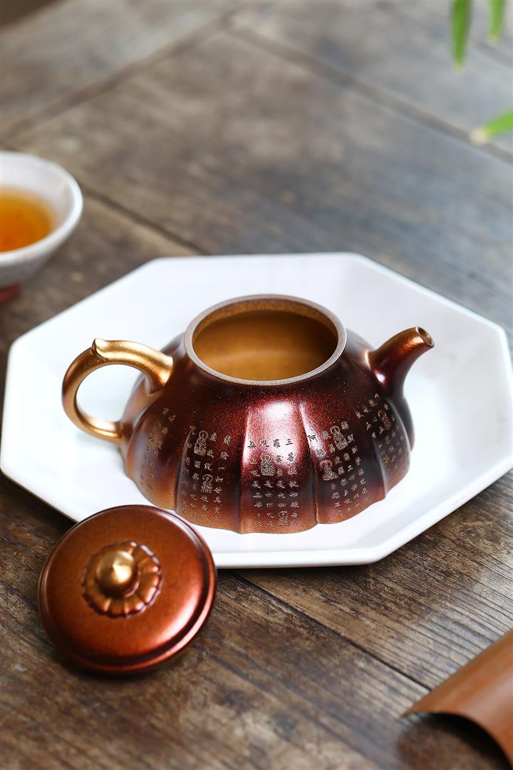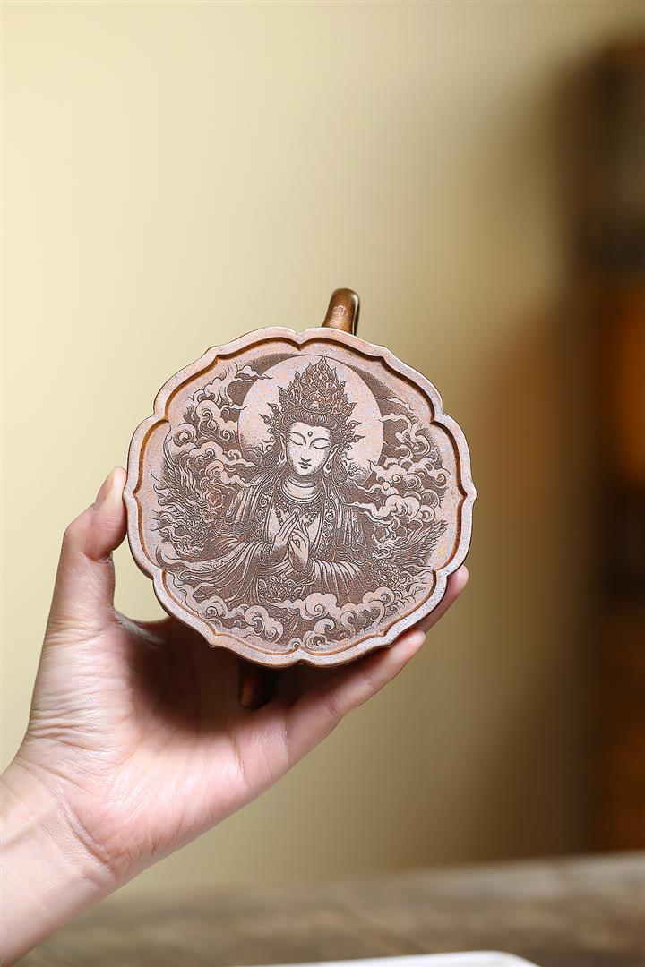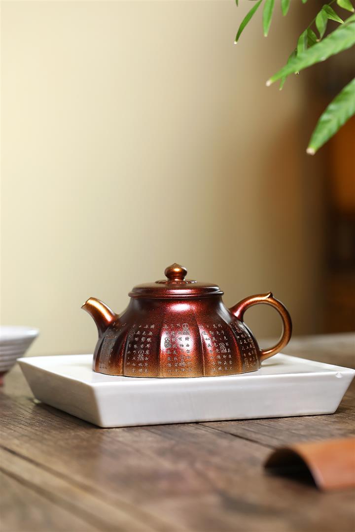 紫砂壺名家老紫泥刻繪周盤壺POT4009