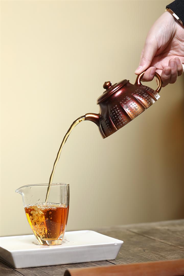 【泥料特點】砂土氣重,似淳實農民,日久使用,漸露鋒芒,養成變化,溫潤莊重。紫砂是壹種雙重氣孔結構的多孔性材質,氣孔微細,密度高。用紫砂壺沏茶,不失原味,且香不渙散,得茶之真香真味。紫砂使用越久,壺身色澤越發光亮照人,氣韻溫雅。紫砂壺長久使用器身會因撫摸擦拭,變得越發溫潤光澤。