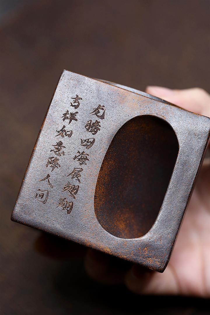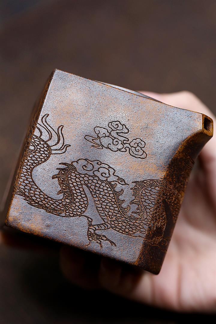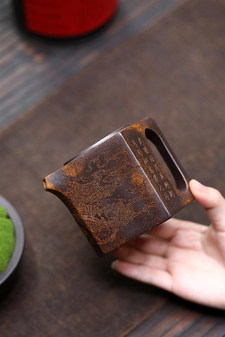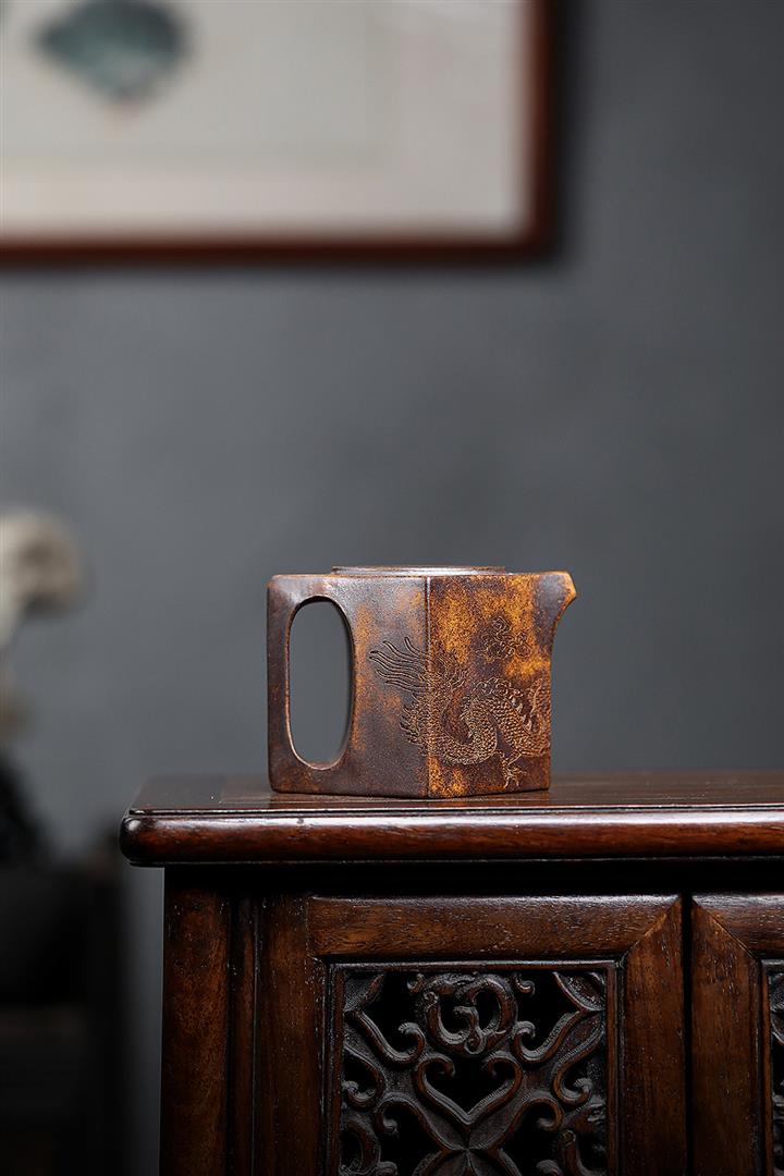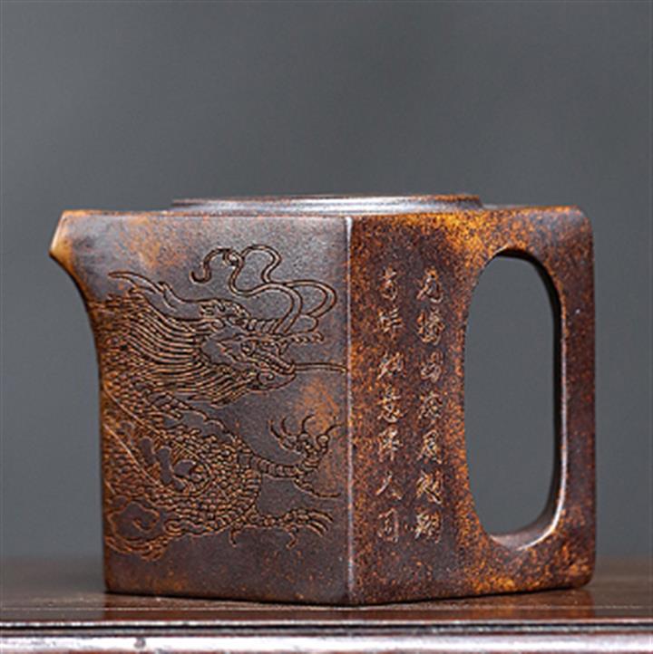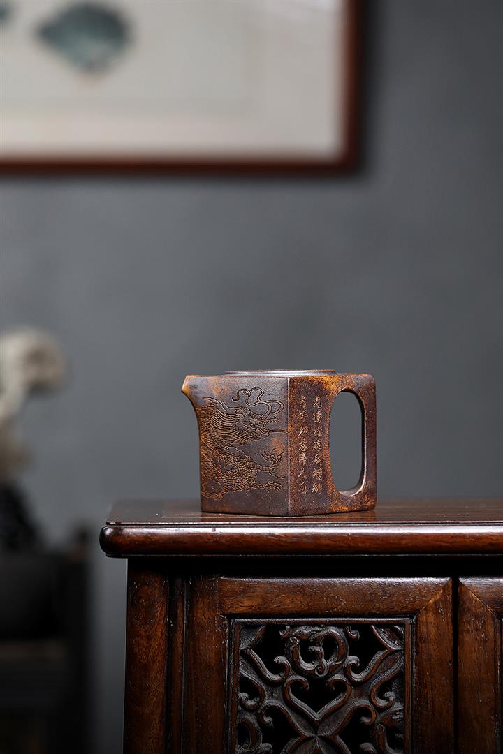 六方宮燈原礦龍骨金砂手刻紫砂壺工堂pot3868