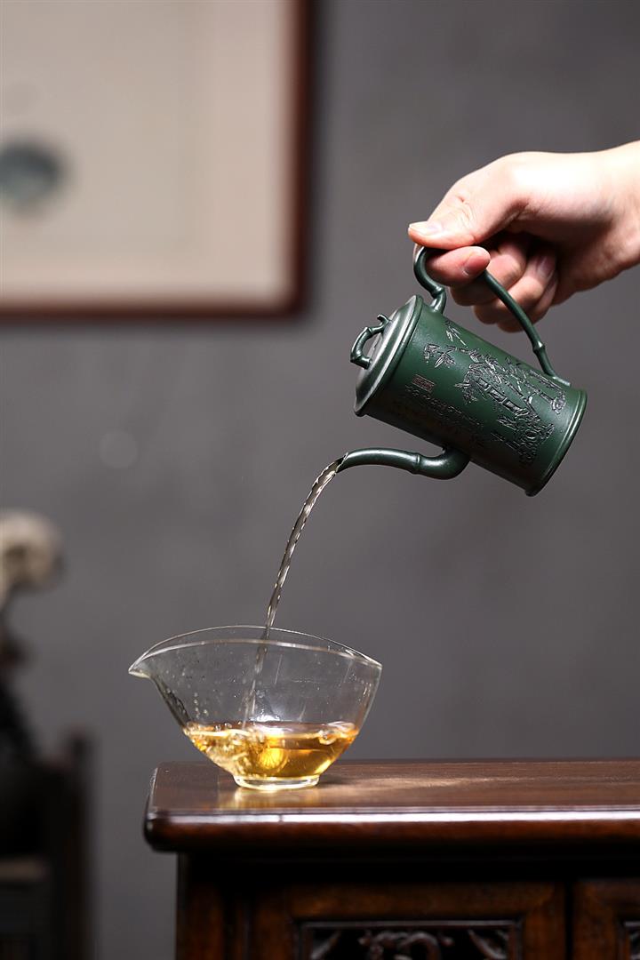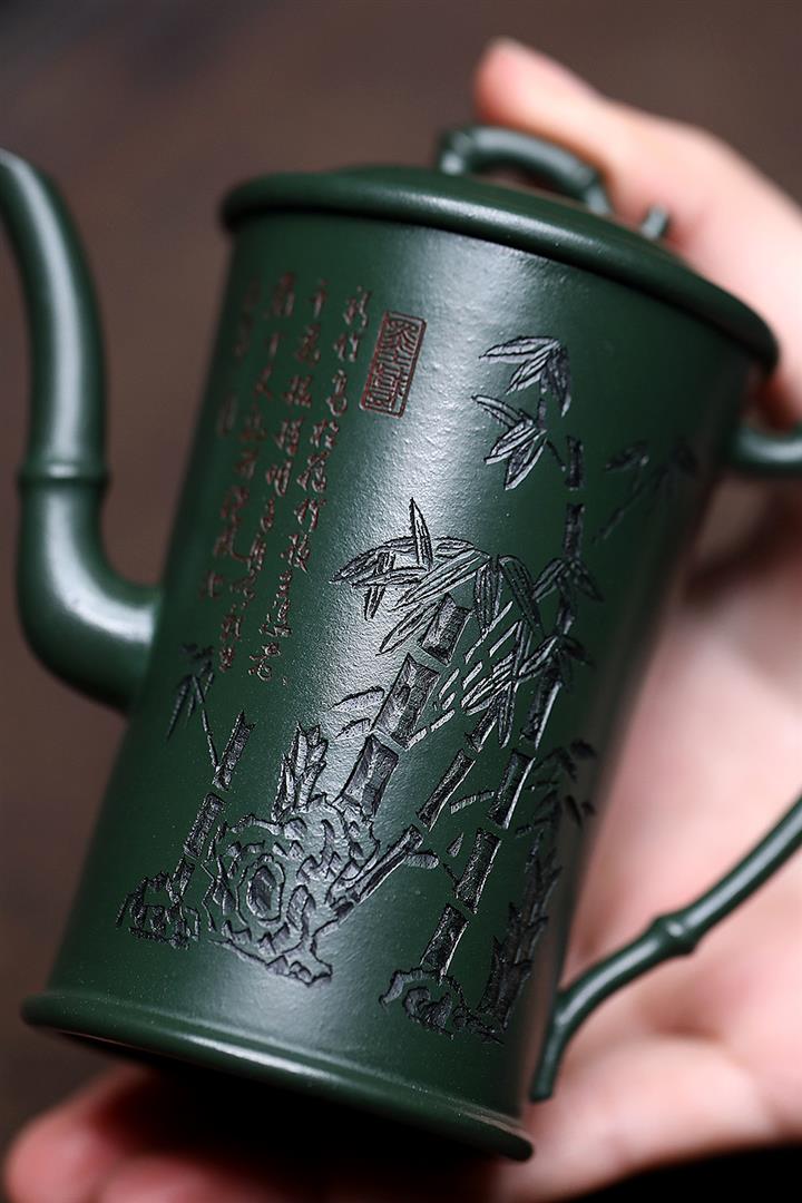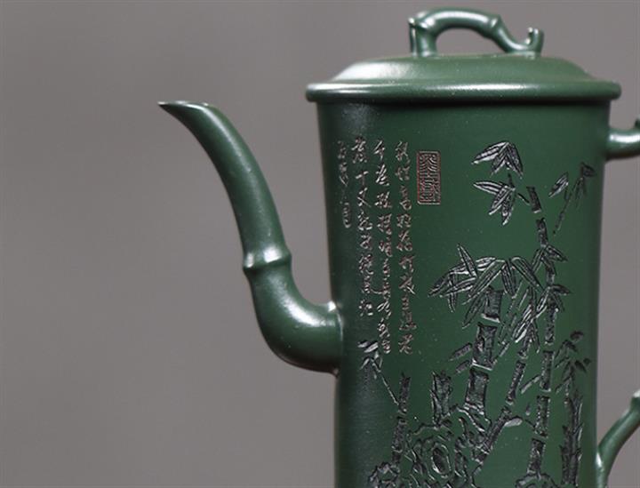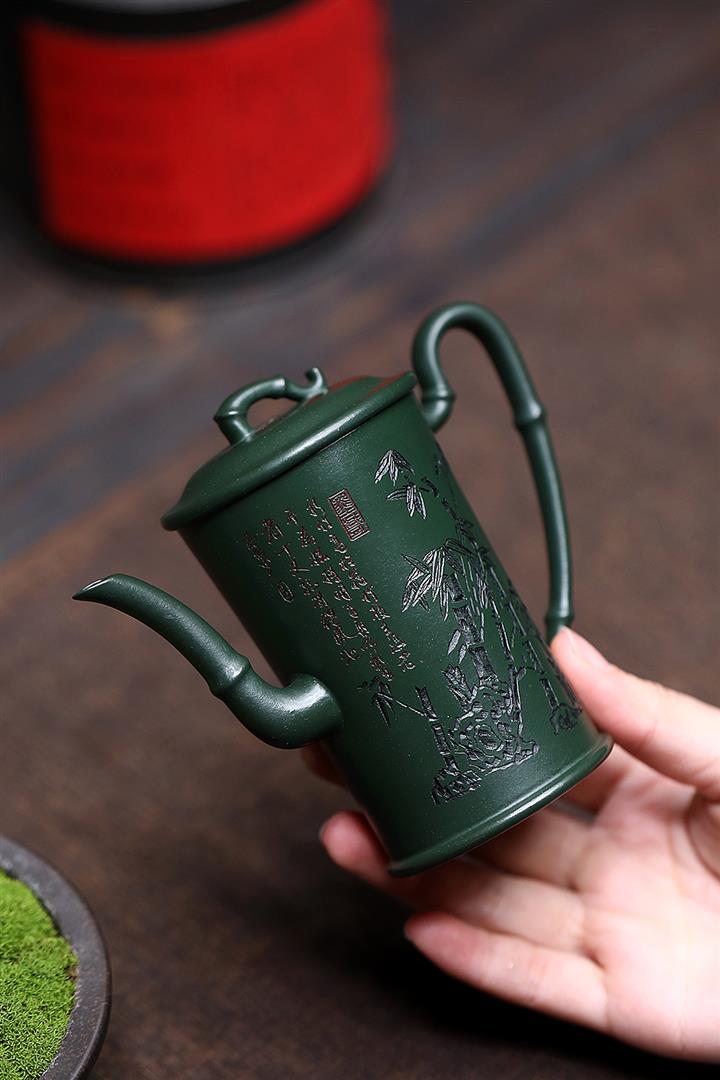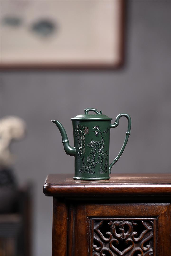 150cc原礦民國綠泥節節高升泡茶壺POT8992