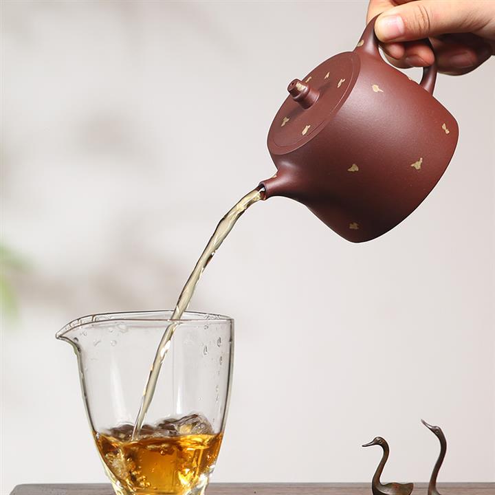 【泥料特點】砂土氣重,似淳實農民,日久使用,漸露鋒芒,養成變化,溫潤莊重。紫砂是壹種雙重氣孔結構的多孔性材質,氣孔微細,密度高。用紫砂壺沏茶,不失原味,且香不渙散,得茶之真香真味。紫砂使用越久,壺身色澤越發光亮照人,氣韻溫雅。紫砂壺長久使用器身會因撫摸擦拭,變得越發溫潤光澤。