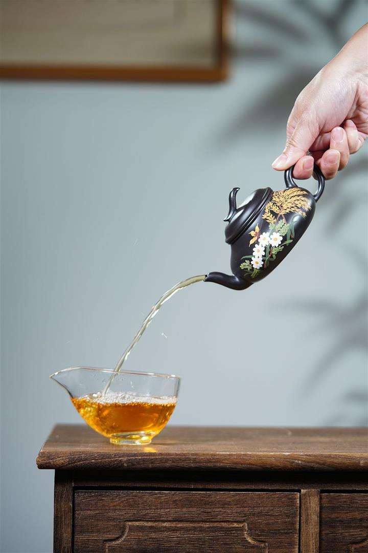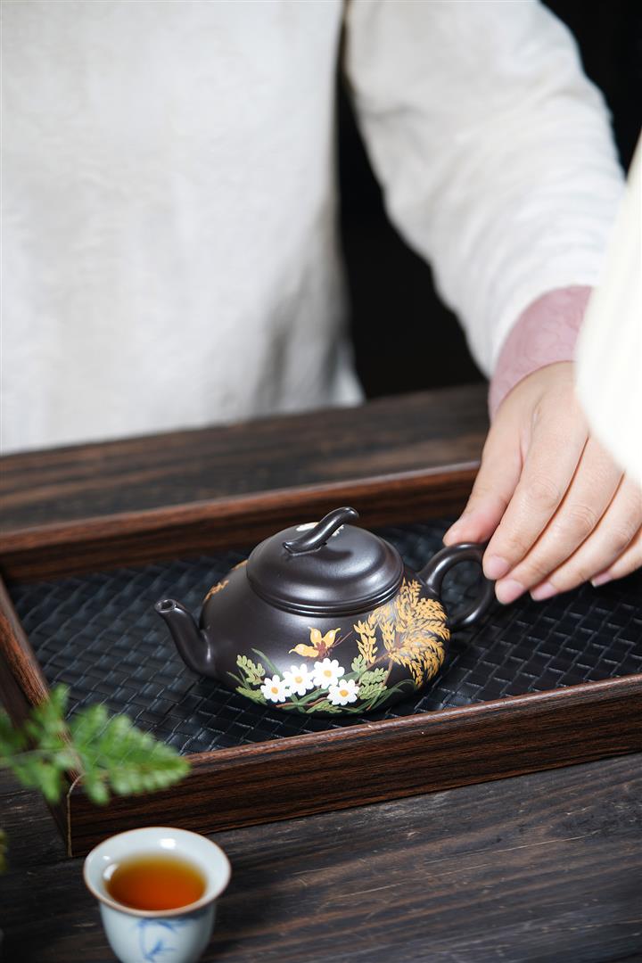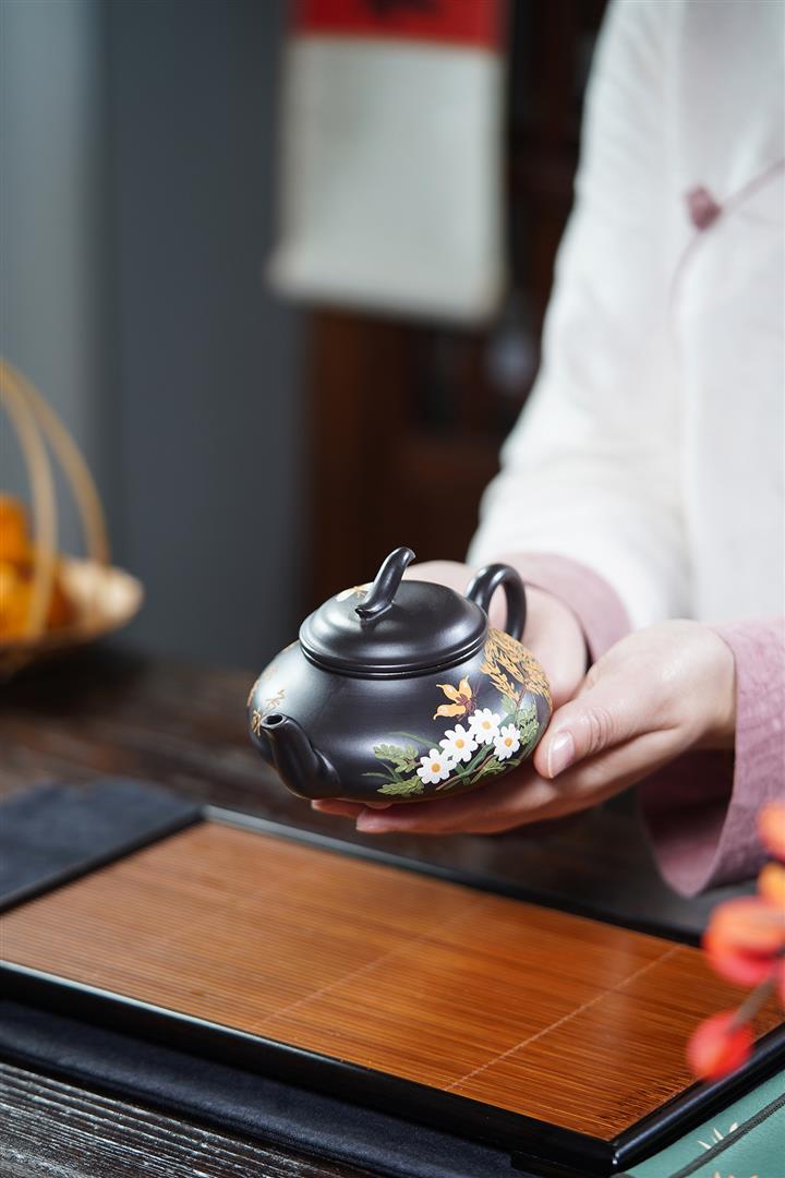 墨綠泥九齡君子蘭幾何周盤茶壺POT6518