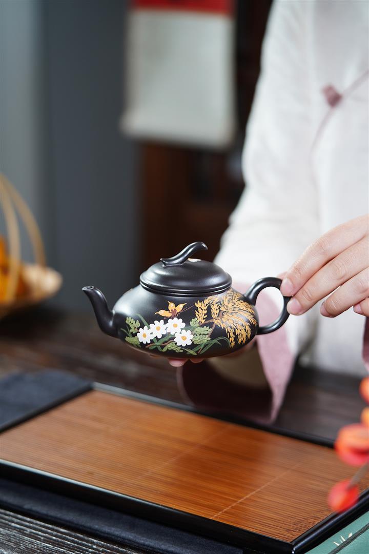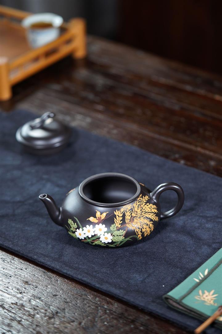 230cc原礦黑泥蝶戀花豐收茶壺POT9009