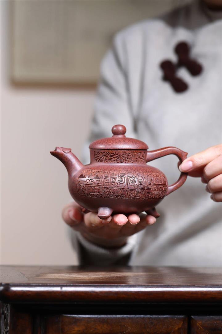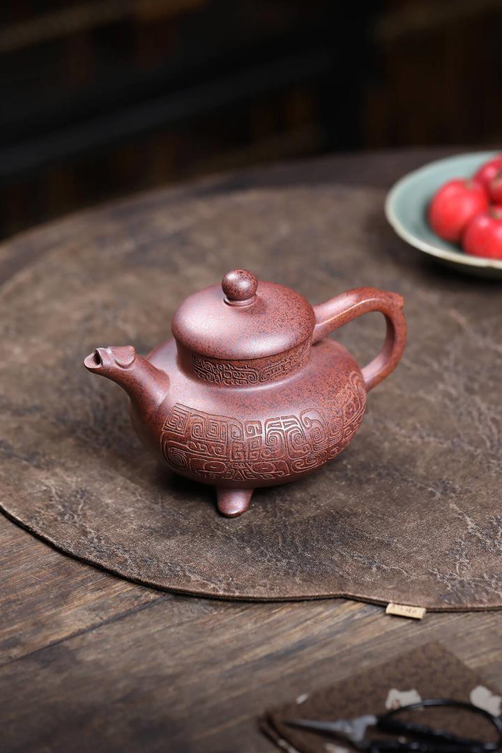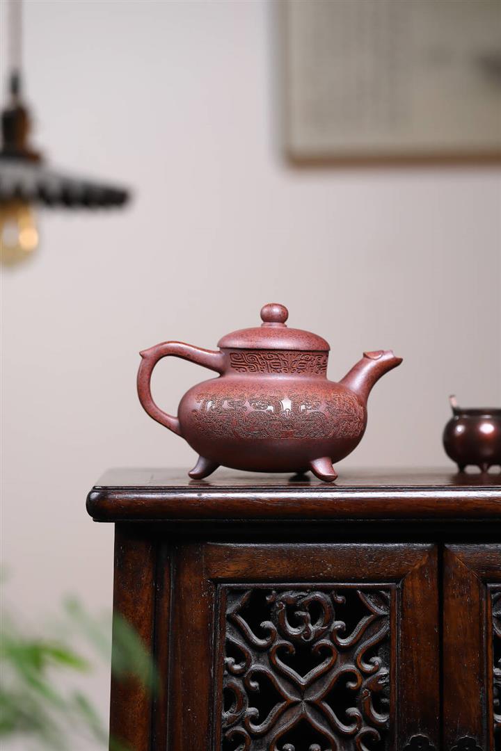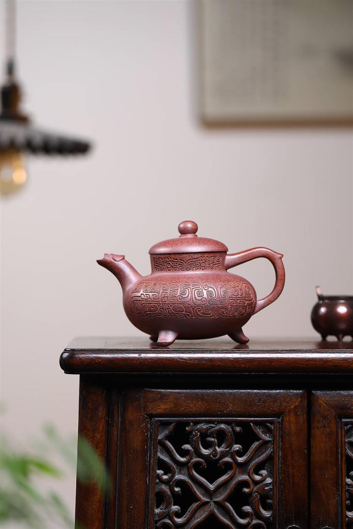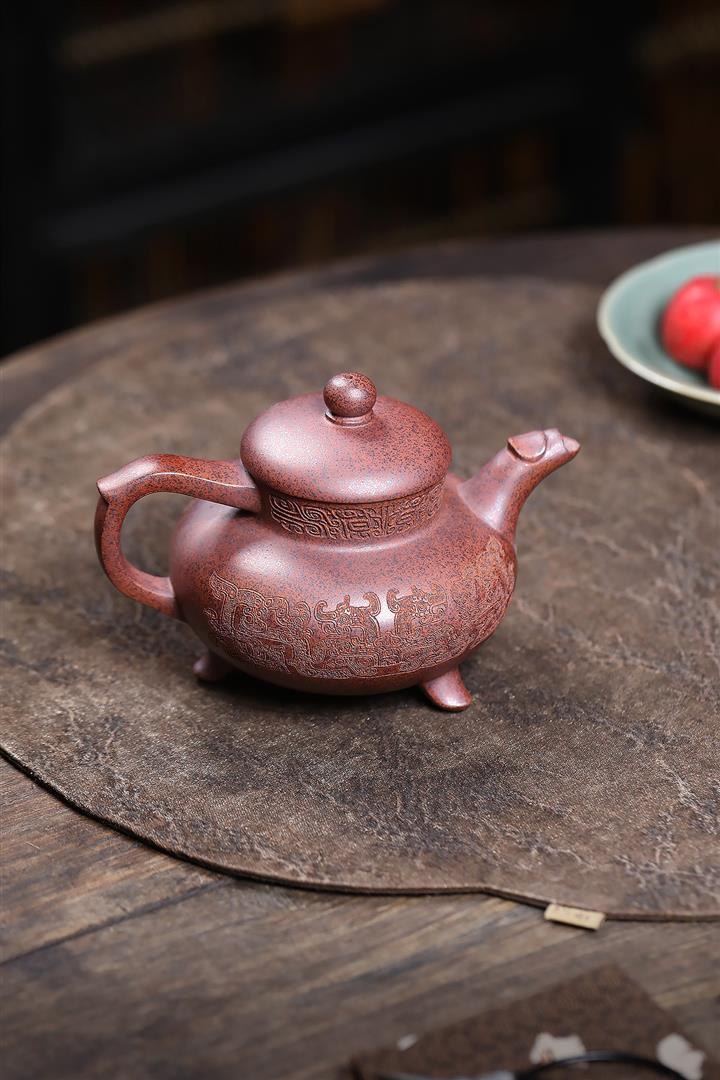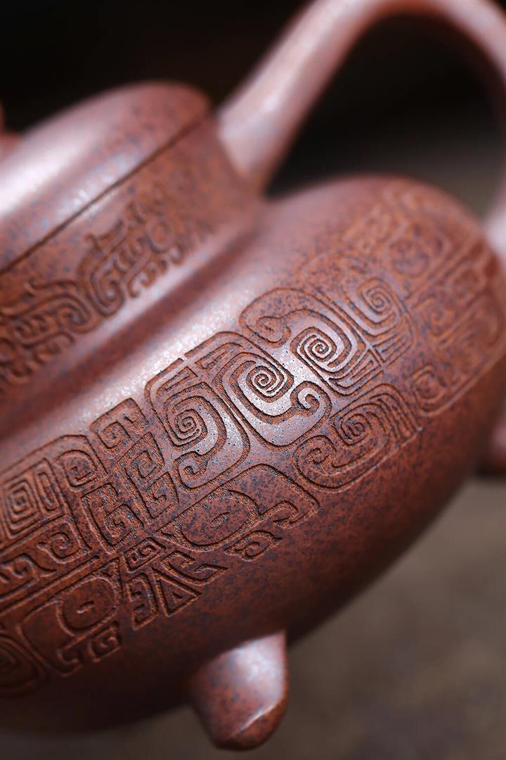 380cc段泥赤焰火雲燒滿刻秦權茶壺POT8202