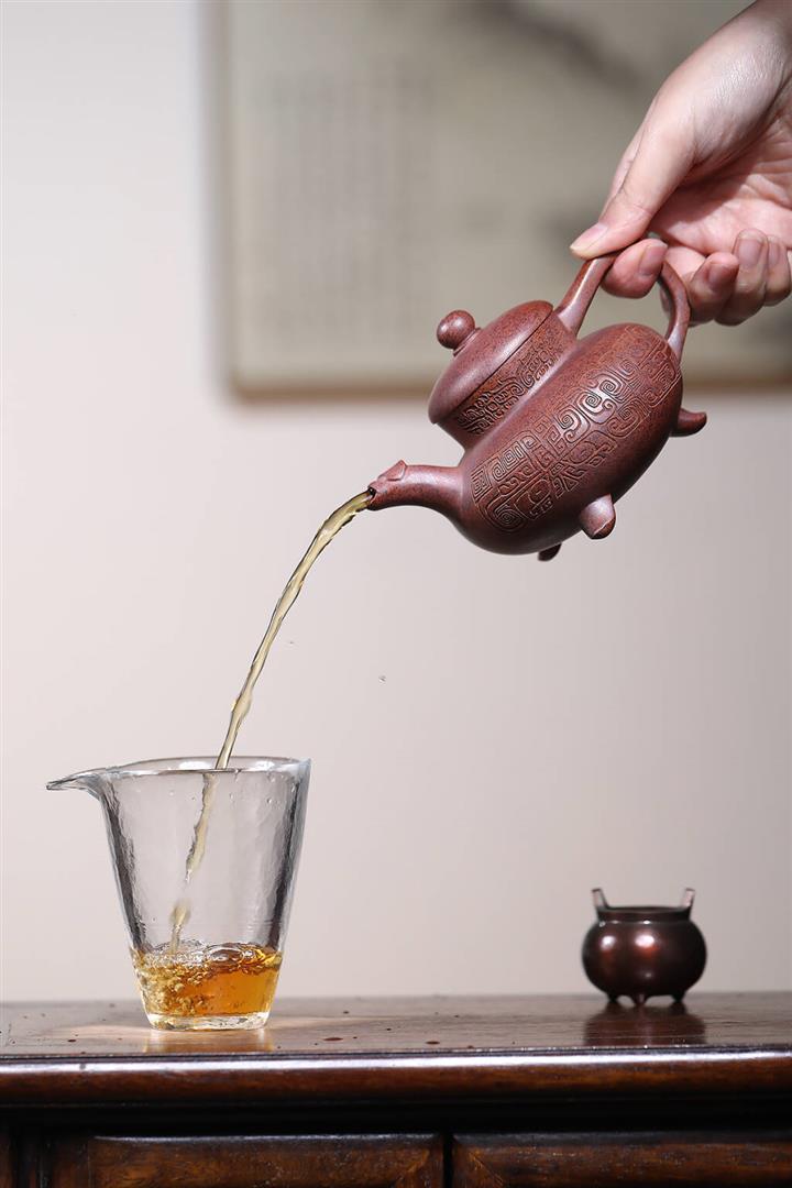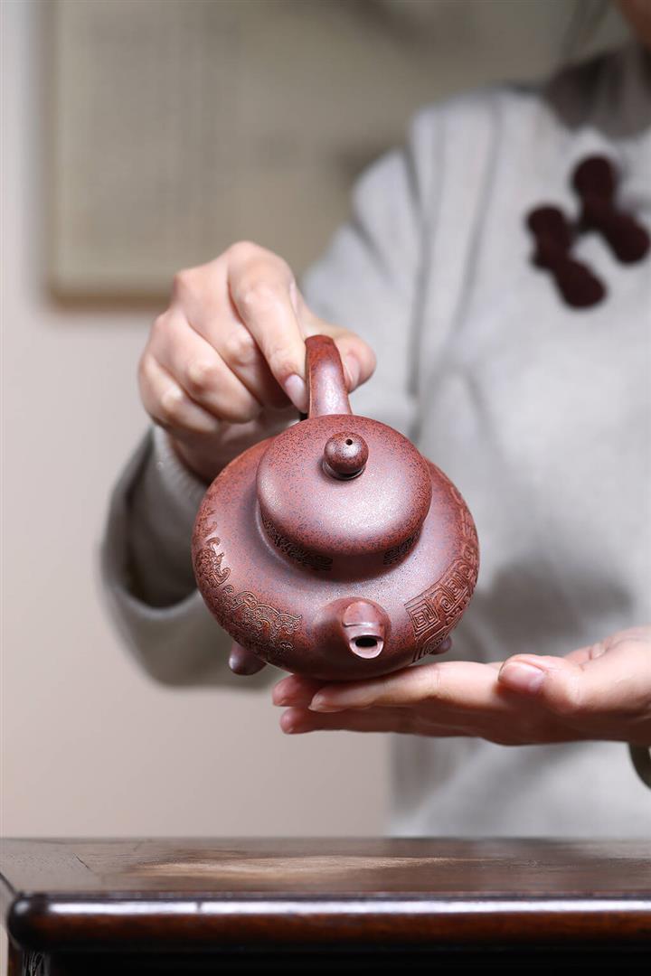 【泥料特點】砂土氣重,似淳實農民,日久使用,漸露鋒芒,養成變化,溫潤莊重。紫砂是壹種雙重氣孔結構的多孔性材質,氣孔微細,密度高。用紫砂壺沏茶,不失原味,且香不渙散,得茶之真香真味。紫砂使用越久,壺身色澤越發光亮照人,氣韻溫雅。紫砂壺長久使用器身會因撫摸擦拭,變得越發溫潤光澤。