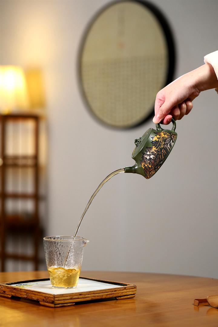 【作品介紹】此款壺形線條流暢,壺把,壺嘴,壺身壹氣呵成栩栩如生,是收藏把玩的好壺,泥料色澤古樸典雅,日久使用,漸露鋒芒,養成變化快,溫潤莊重,用其泡茶,使用的年代久,壺身就溫潤,泡出來的茶湯也就醇郁芳馨。