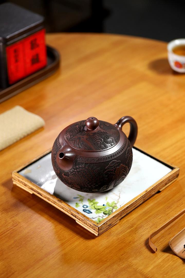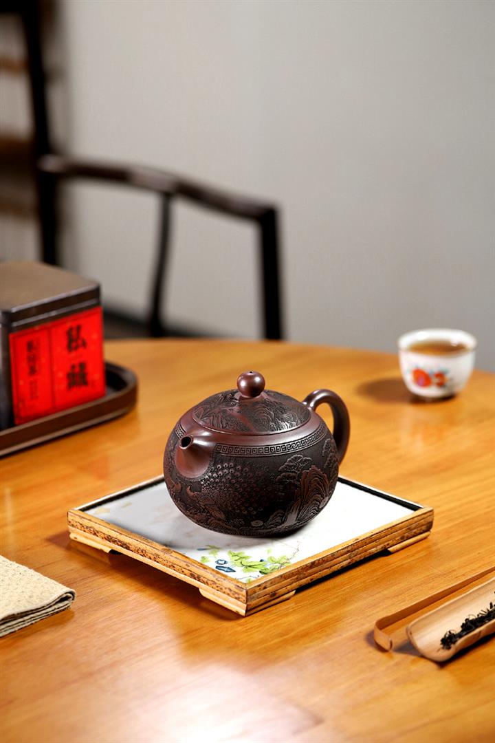 原礦烏金砂手工製作寒江茶壺POT6865