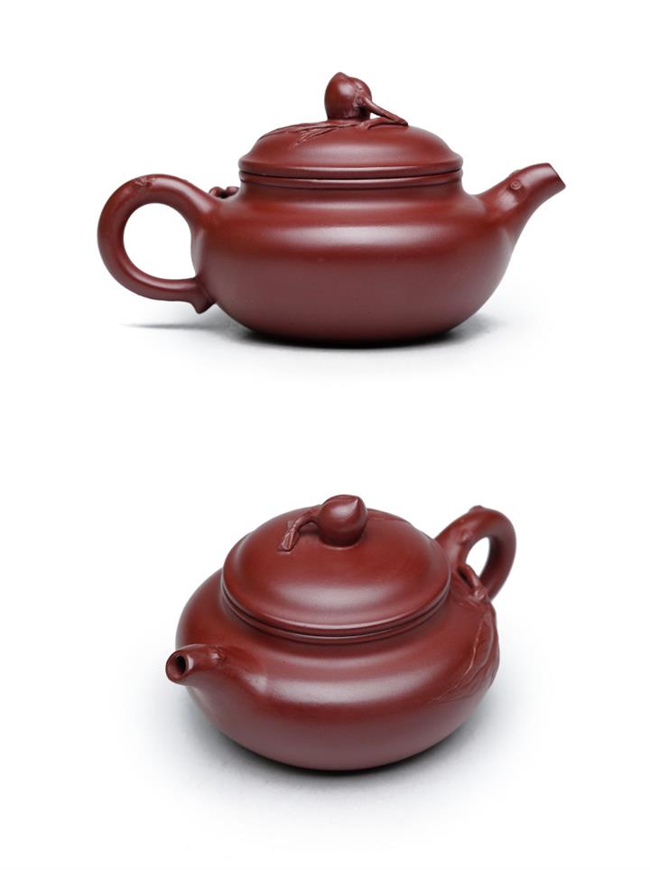【泥料特點】砂土氣重,似淳實農民,日久使用,漸露鋒芒,養成變化,溫潤莊重。紫砂是壹種雙重氣孔結構的多孔性材質,氣孔微細,密度高。用紫砂壺沏茶,不失原味,且香不渙散,得茶之真香真味。紫砂使用越久,壺身色澤越發光亮照人,氣韻溫雅。紫砂壺長久使用器身會因撫摸擦拭,變得越發溫潤光澤。