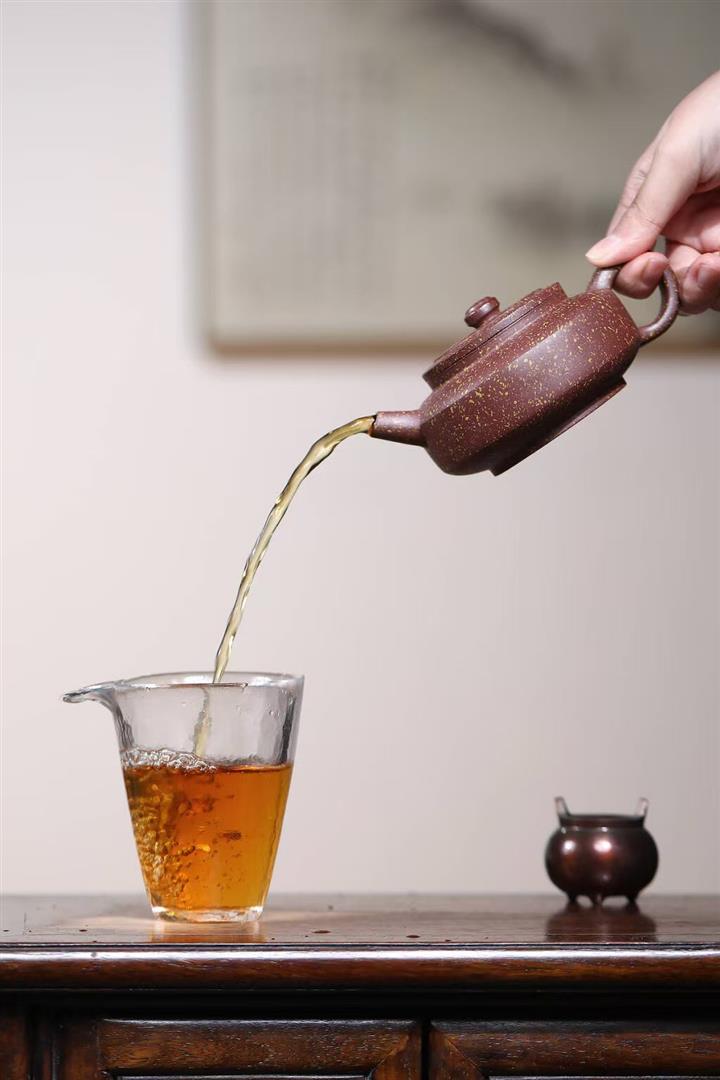 【泥料特點】砂土氣重,似淳實農民,日久使用,漸露鋒芒,養成變化,溫潤莊重。紫砂是壹種雙重氣孔結構的多孔性材質,氣孔微細,密度高。用紫砂壺沏茶,不失原味,且香不渙散,得茶之真香真味。紫砂使用越久,壺身色澤越發光亮照人,氣韻溫雅。紫砂壺長久使用器身會因撫摸擦拭,變得越發溫潤光澤。