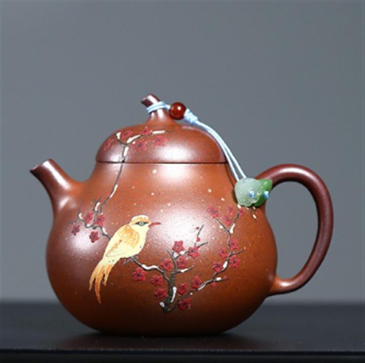 【作品介紹】此款壺形線條流暢,壺把,壺嘴,壺身壹氣呵成栩栩如生,是收藏把玩的好壺,泥料色澤古樸典雅,日久使用,漸露鋒芒,養成變化快,溫潤莊重,用其泡茶,使用的年代久,壺身就溫潤,泡出來的茶湯也就醇郁芳馨。