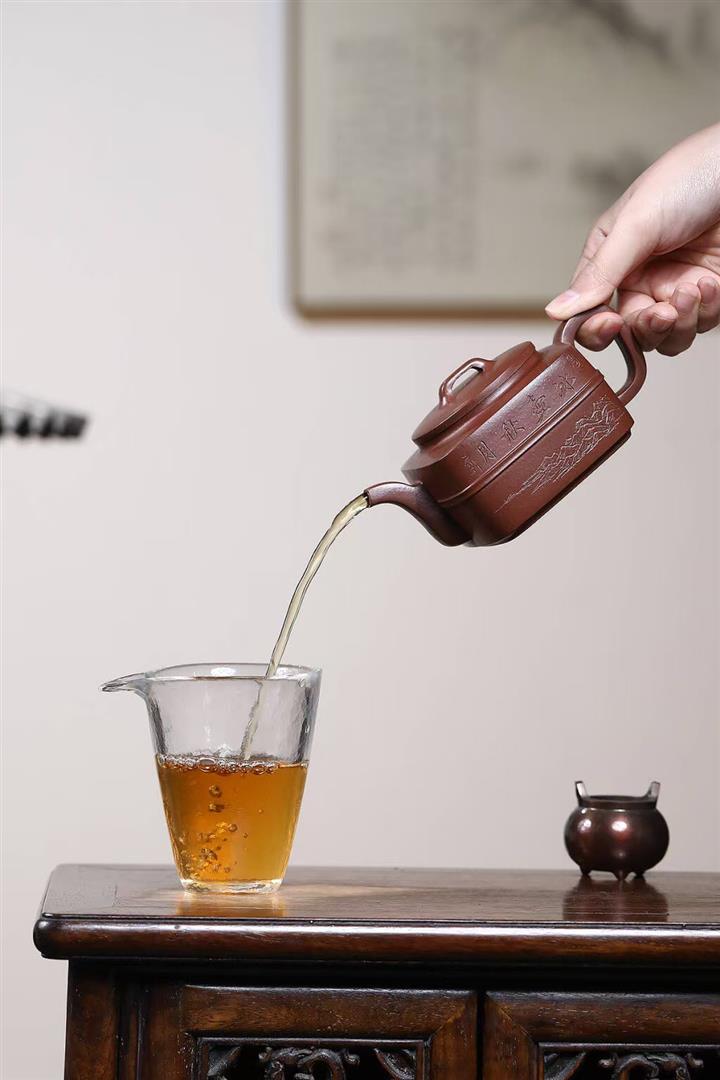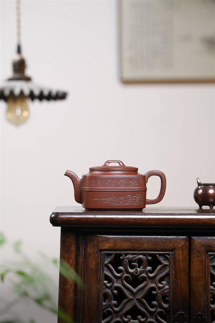 【作品介紹】此款壺形線條流暢,壺把,壺嘴,壺身壹氣呵成栩栩如生,是收藏把玩的好壺,泥料色澤古樸典雅,日久使用,漸露鋒芒,養成變化快,溫潤莊重,用其泡茶,使用的年代久,壺身就溫潤,泡出來的茶湯也就醇郁芳馨。