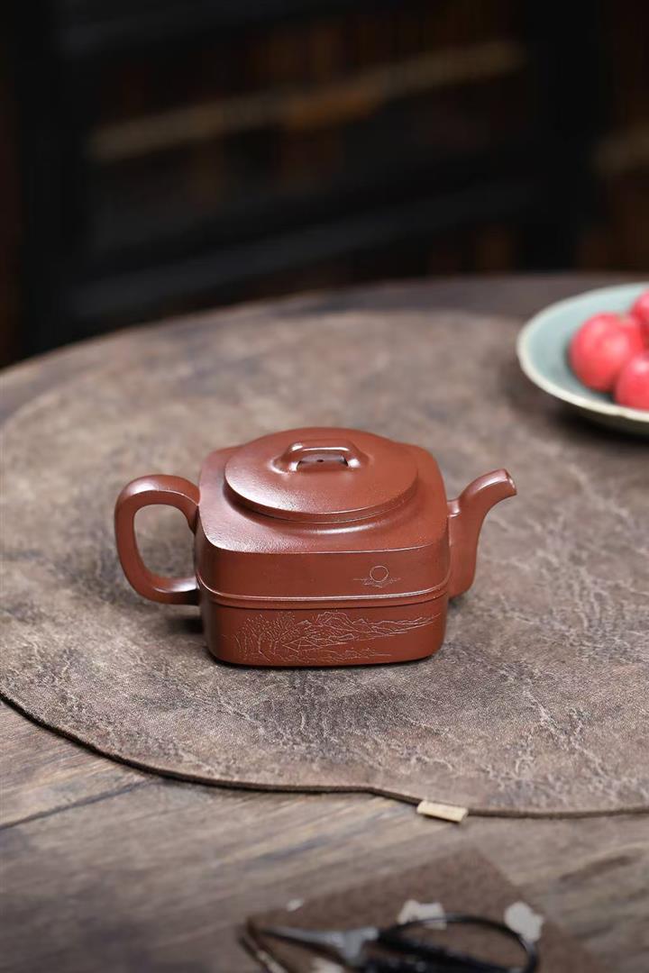 柴燒段泥四方宮燈紫砂壺POT4599
