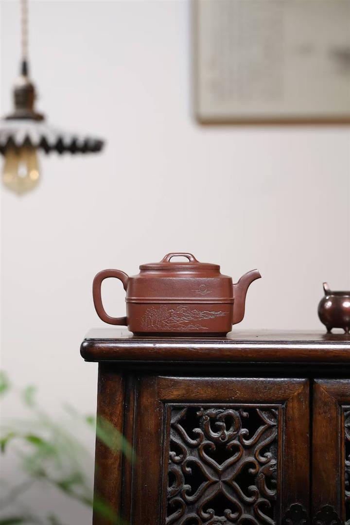 原礦大紅袍潘壺五牛圖紫砂壺POT4602