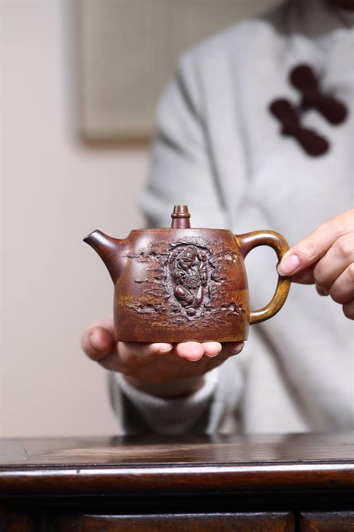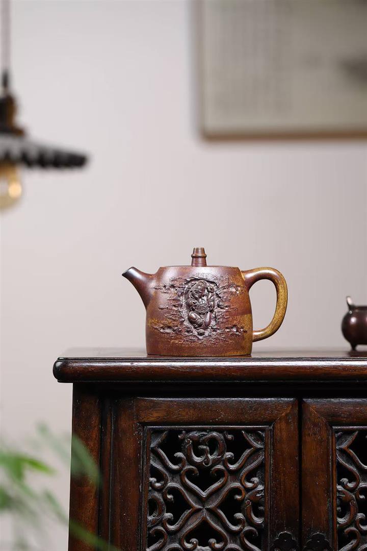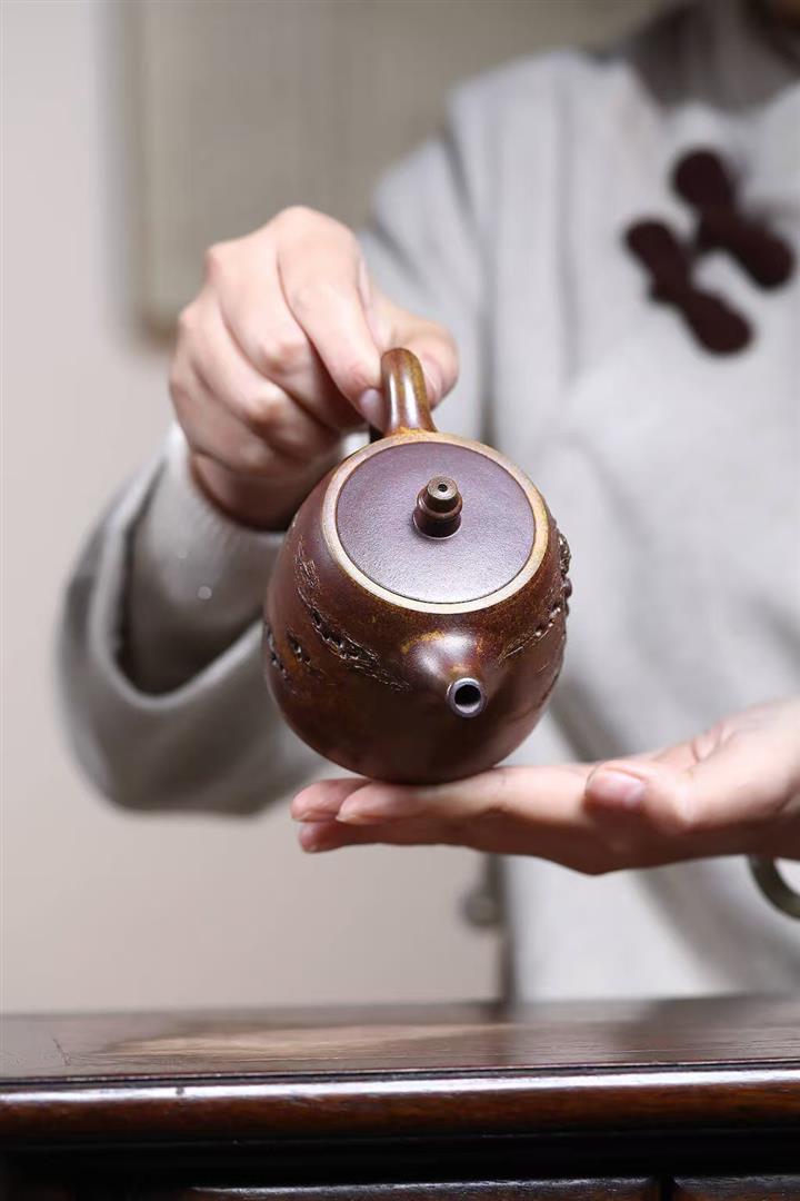 原礦朱泥焐灰如意仿古茶壺POT7427