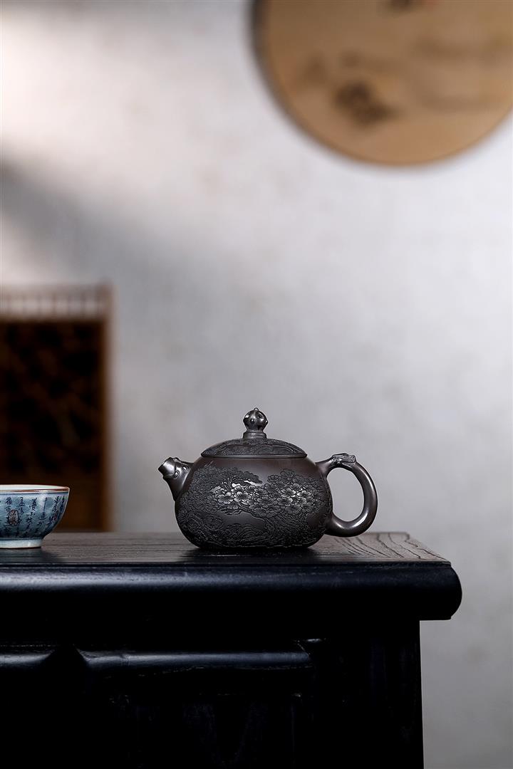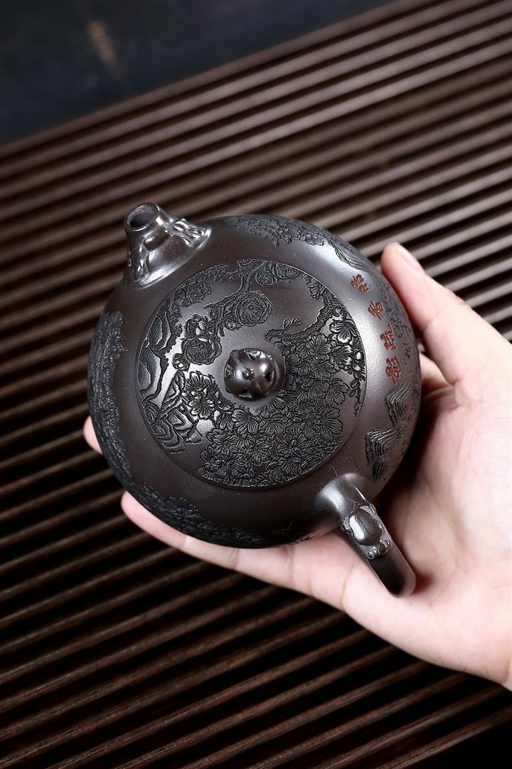 260cc原礦石黃泥刻繪鏤空西施茶壺POT9029