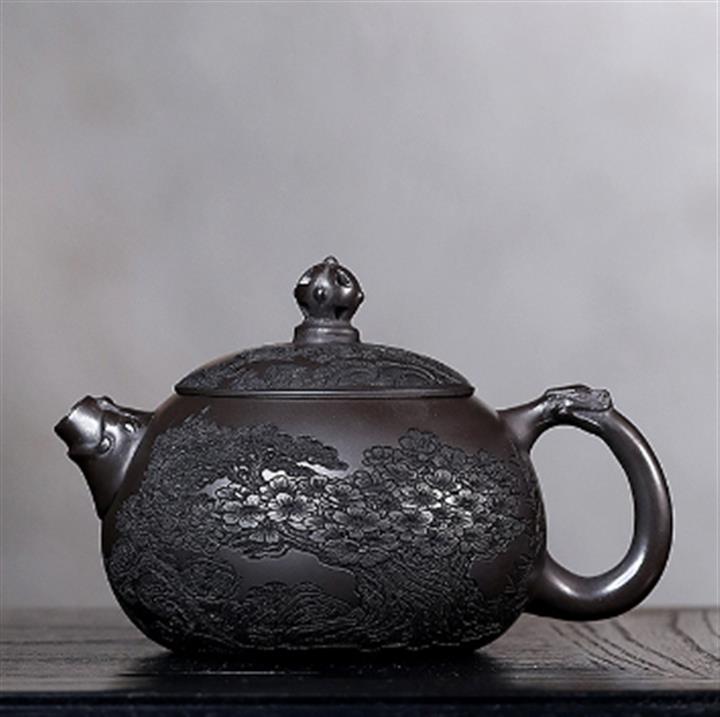 【作品介紹】此款壺形線條流暢,壺把,壺嘴,壺身壹氣呵成栩栩如生,是收藏把玩的好壺,泥料色澤古樸典雅,日久使用,漸露鋒芒,養成變化快,溫潤莊重,用其泡茶,使用的年代久,壺身就溫潤,泡出來的茶湯也就醇郁芳馨。