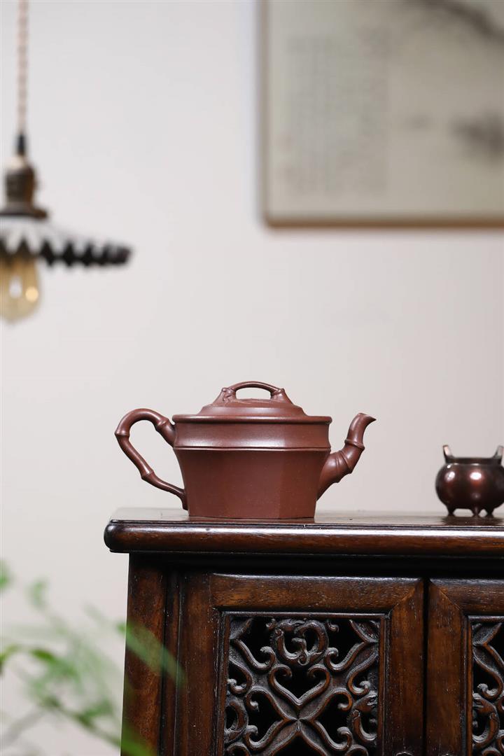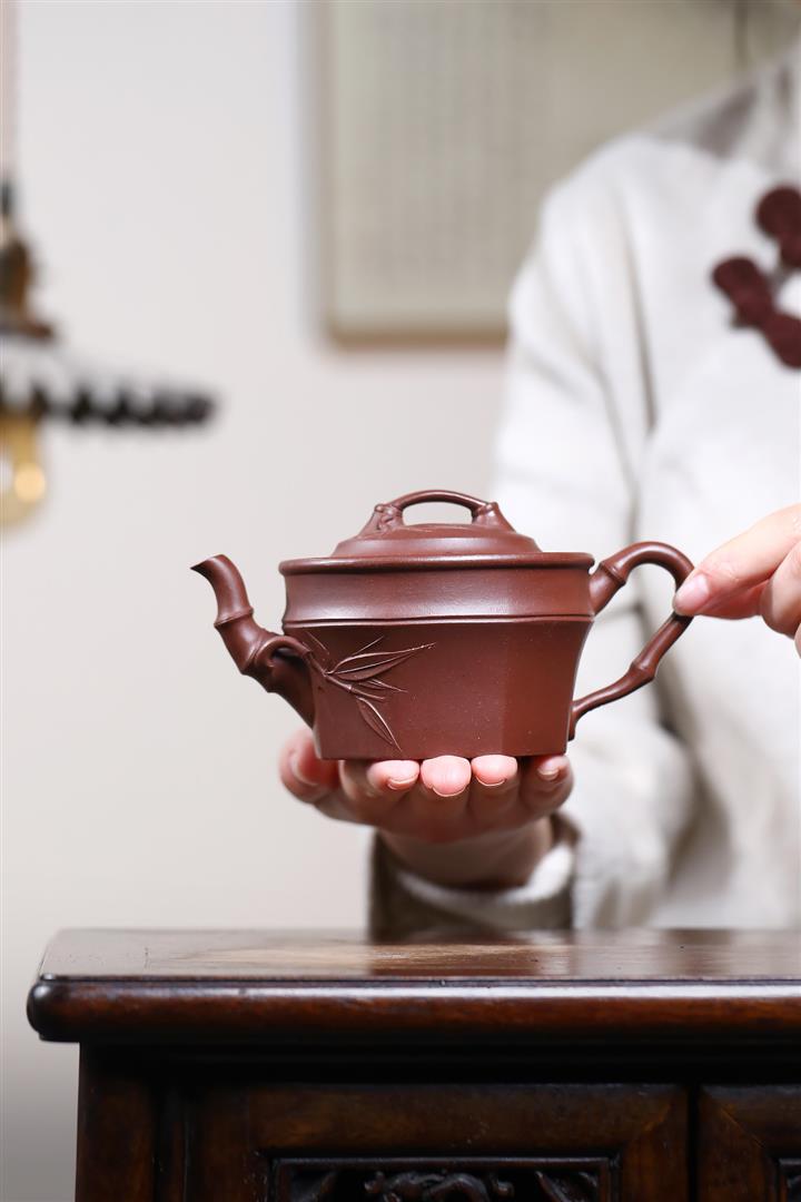 精·翡翠青紫泥抽角竹鼓紫砂壺POT6309