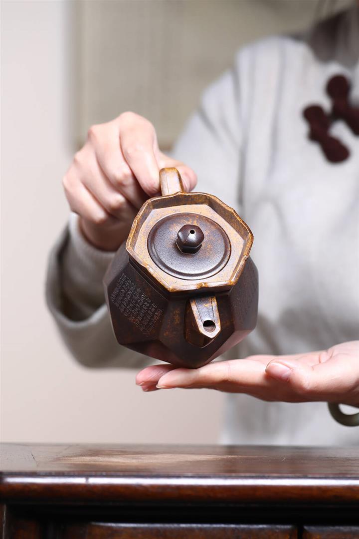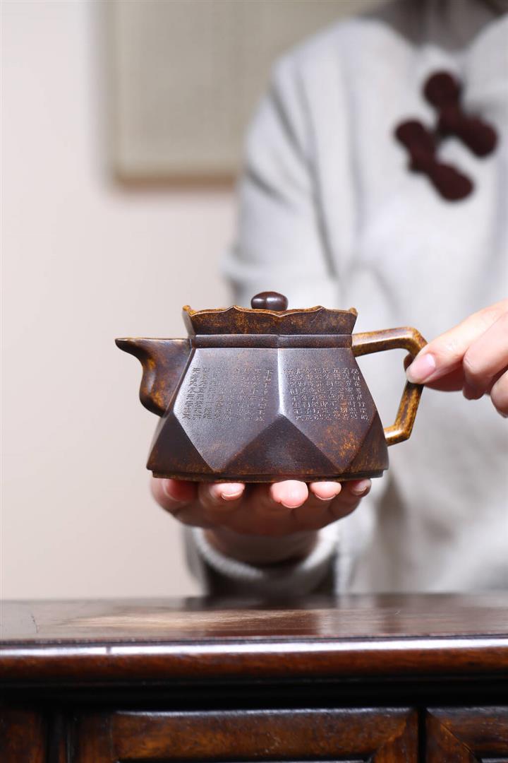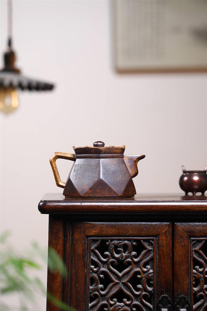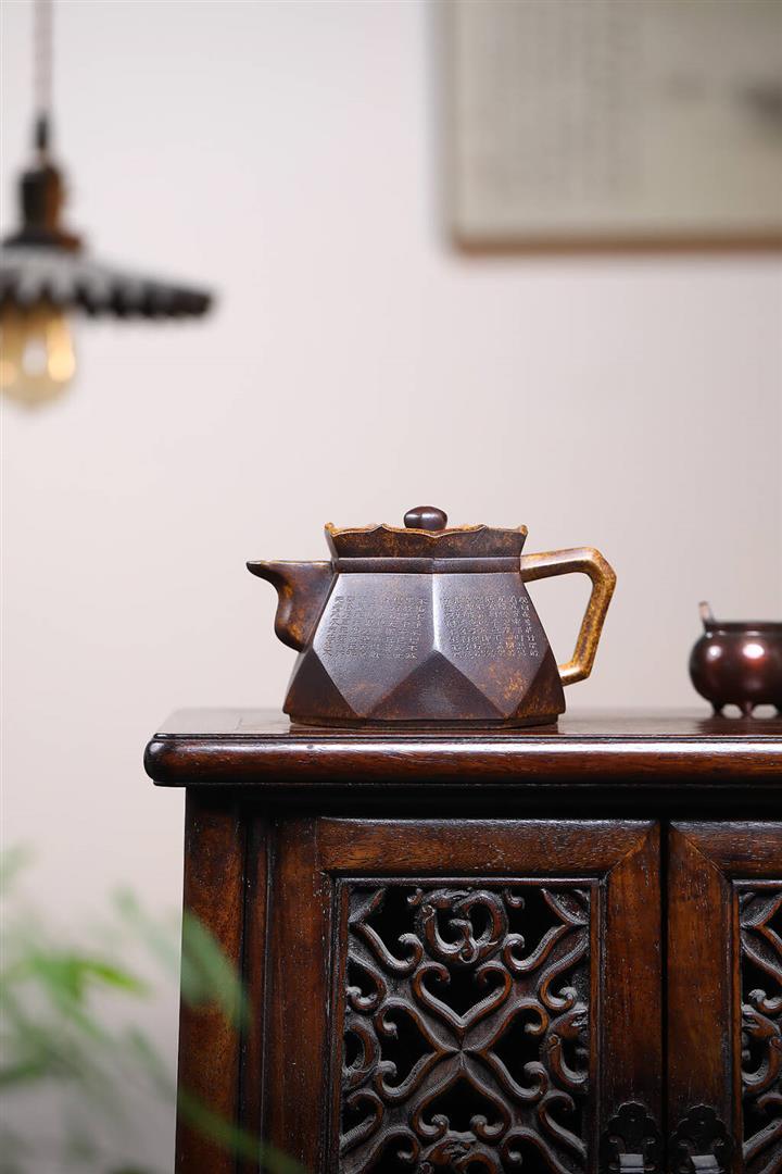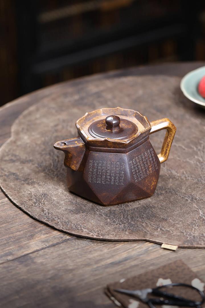 260cc原礦黑朱泥金縷井欄茶壺POT9054