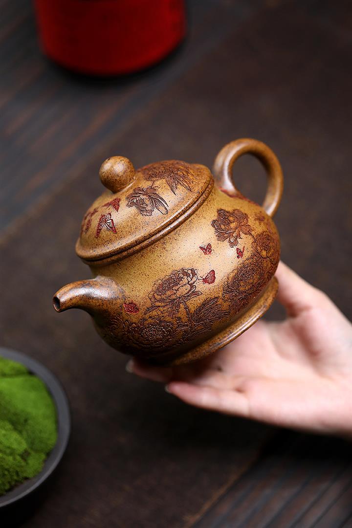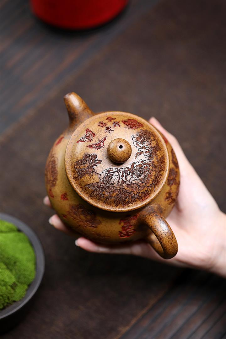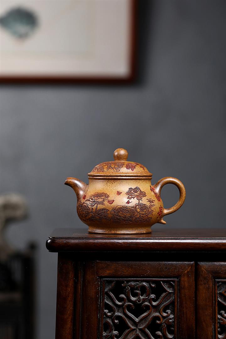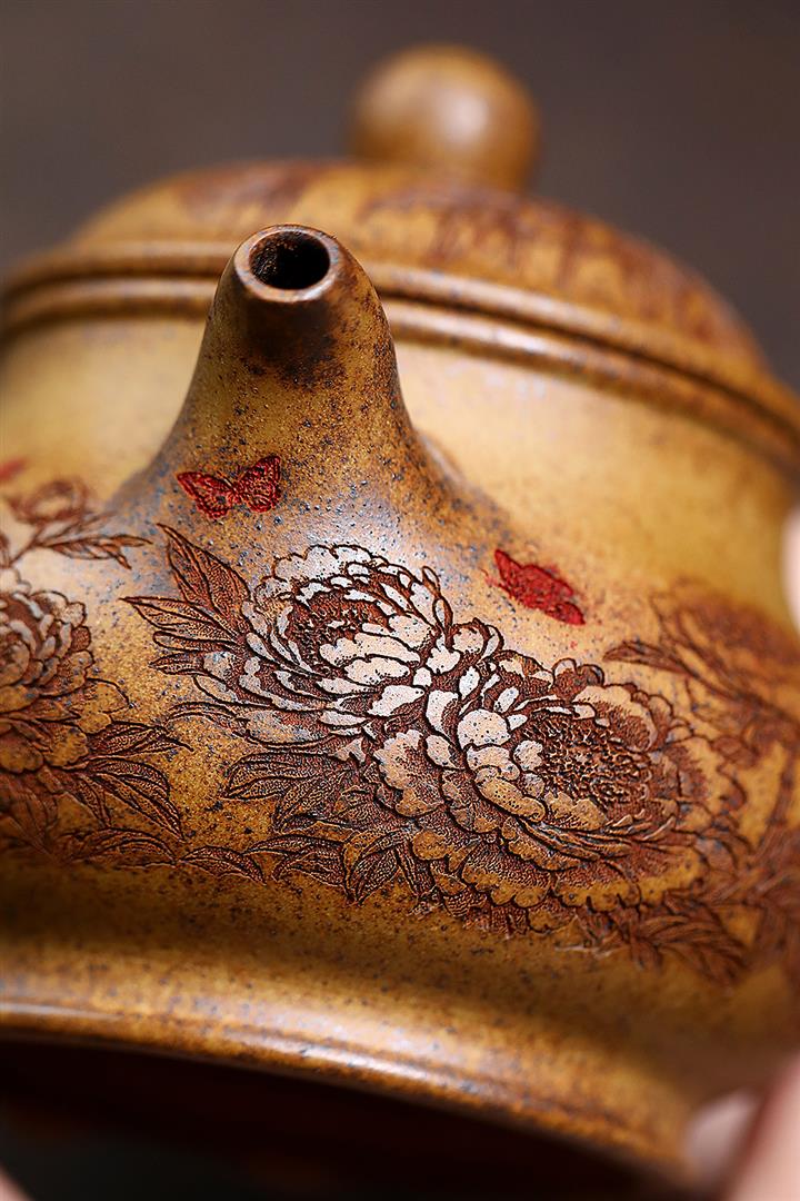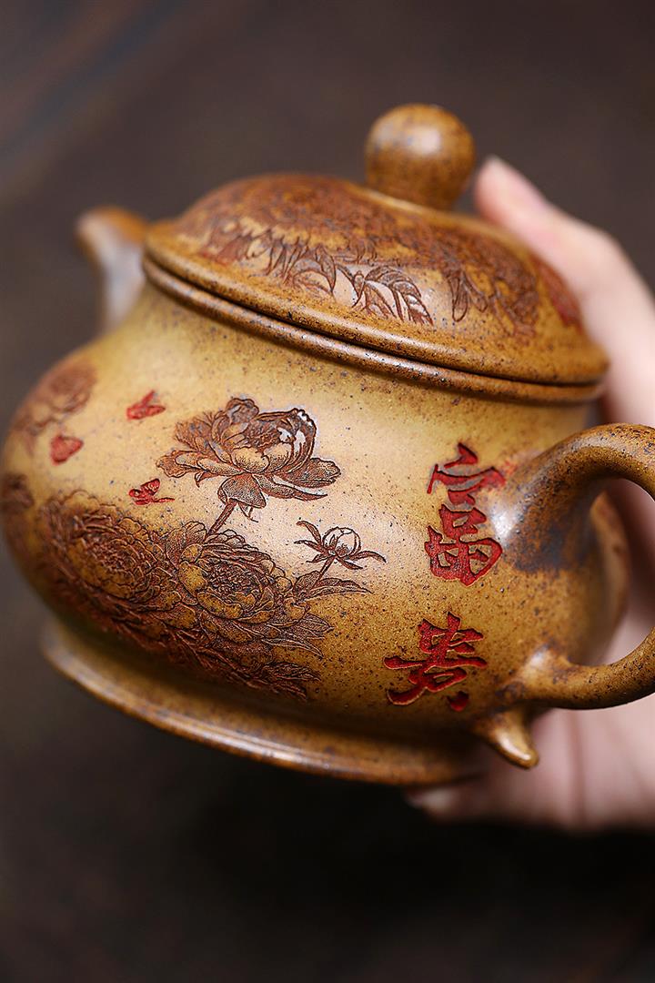 430cc原礦高溫段泥花開富貴潘壺泡茶壺POT9039