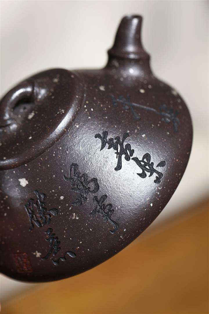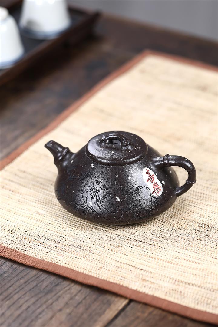 240cc描銀鋪砂雪花紫泥竹韻石瓢茶壺POT9040