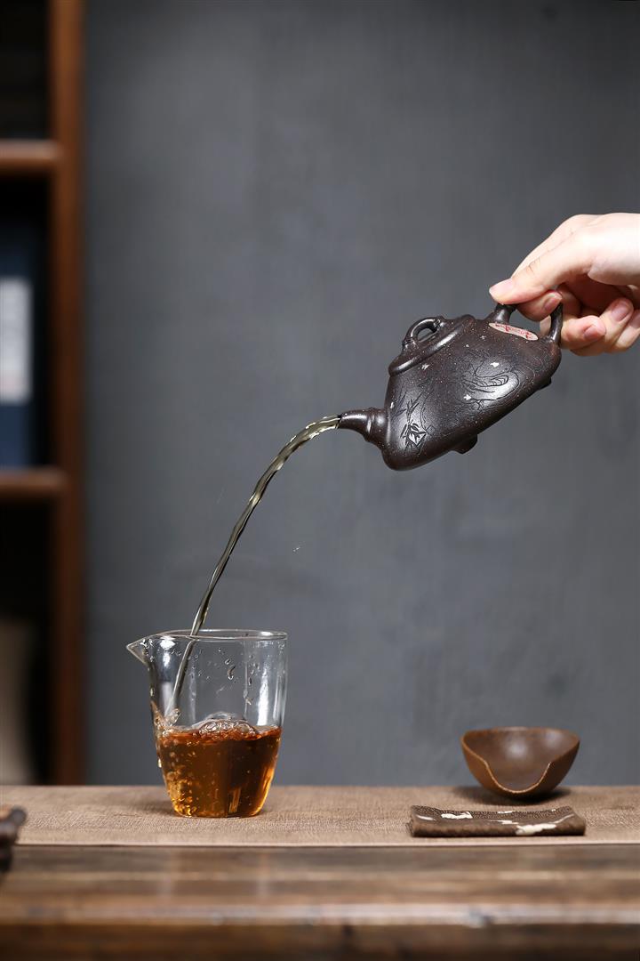 【泥料特點】砂土氣重,似淳實農民,日久使用,漸露鋒芒,養成變化,溫潤莊重。紫砂是壹種雙重氣孔結構的多孔性材質,氣孔微細,密度高。用紫砂壺沏茶,不失原味,且香不渙散,得茶之真香真味。紫砂使用越久,壺身色澤越發光亮照人,氣韻溫雅。紫砂壺長久使用器身會因撫摸擦拭,變得越發溫潤光澤。