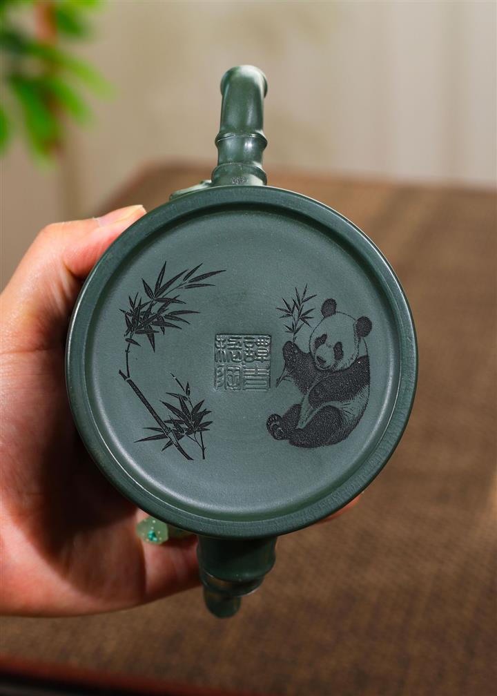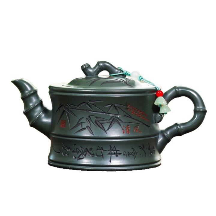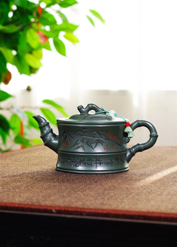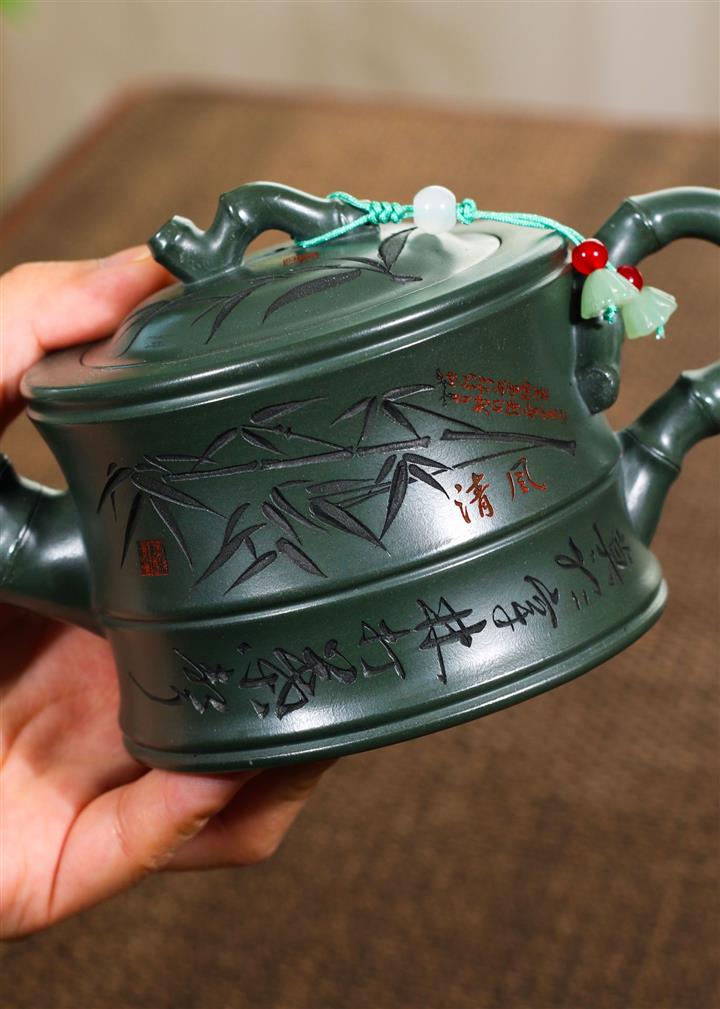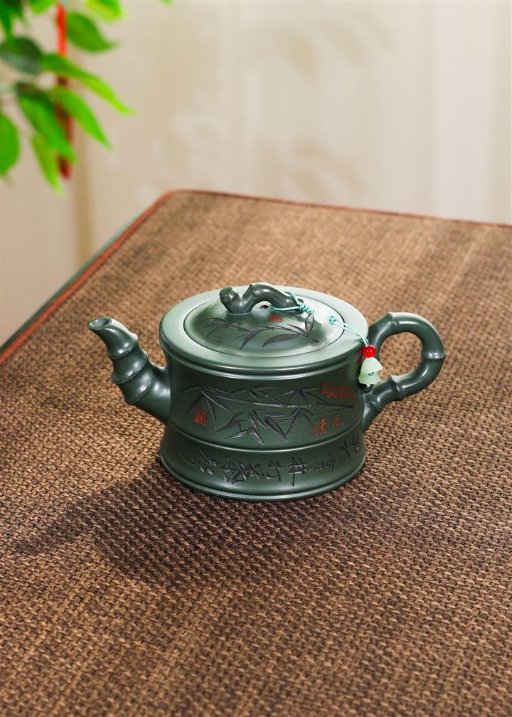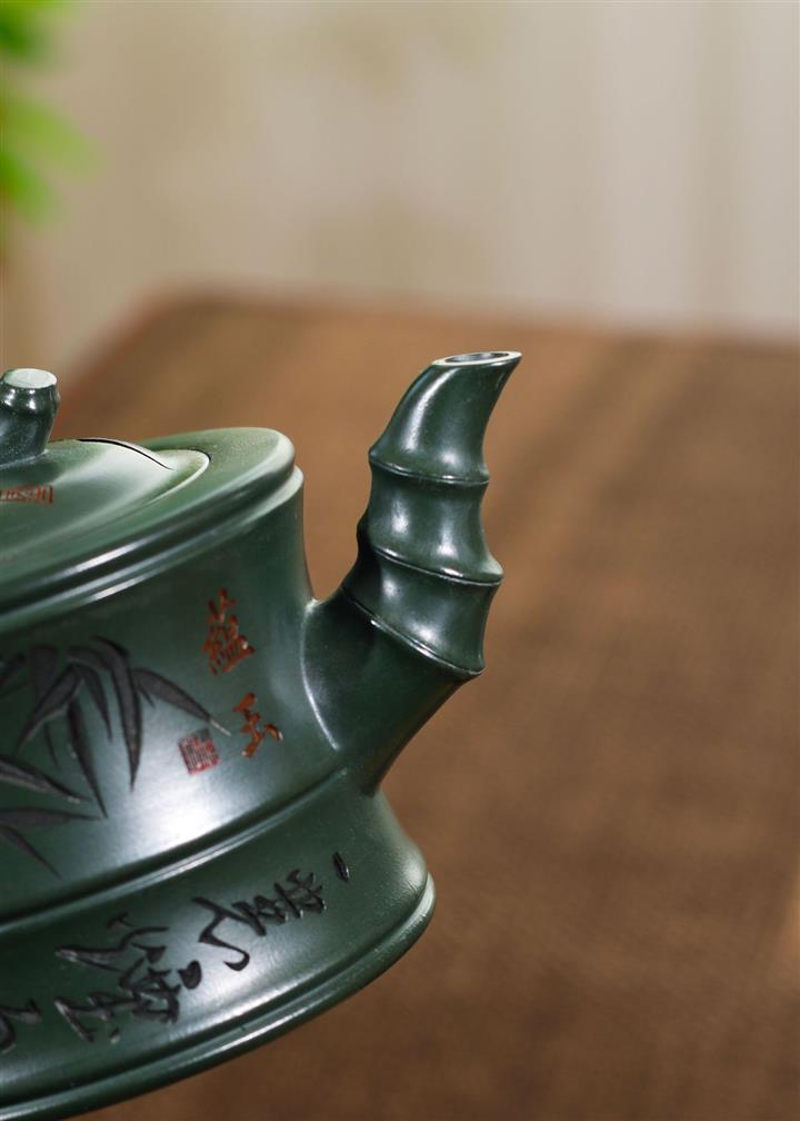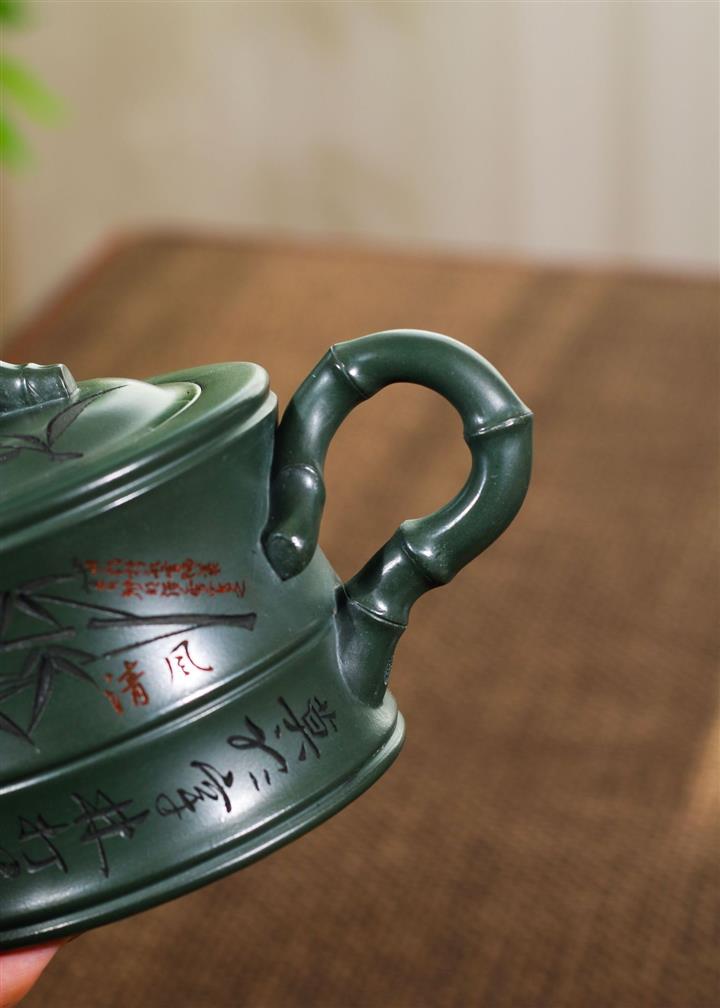 350cc原礦翡翠綠泥通身刻繪竹段茶壺POT9047