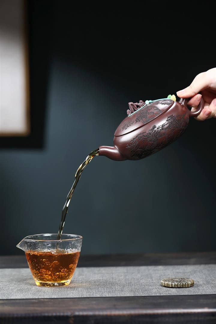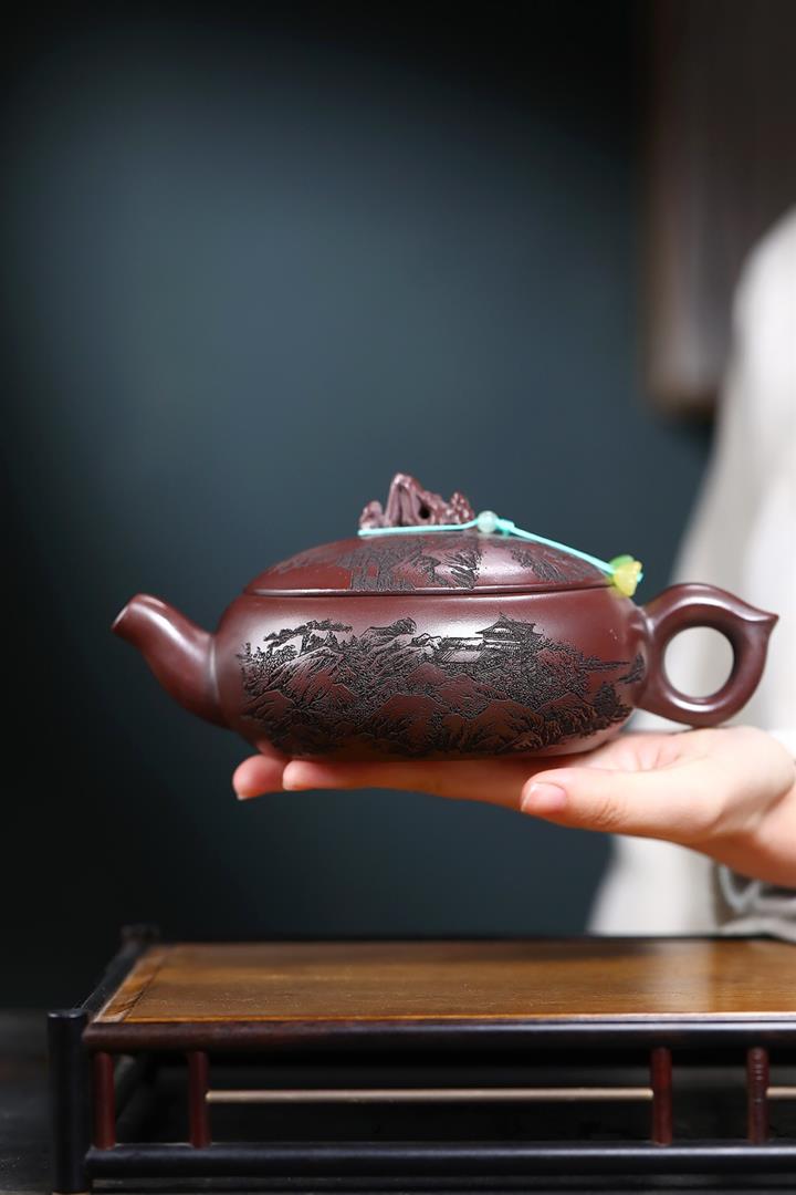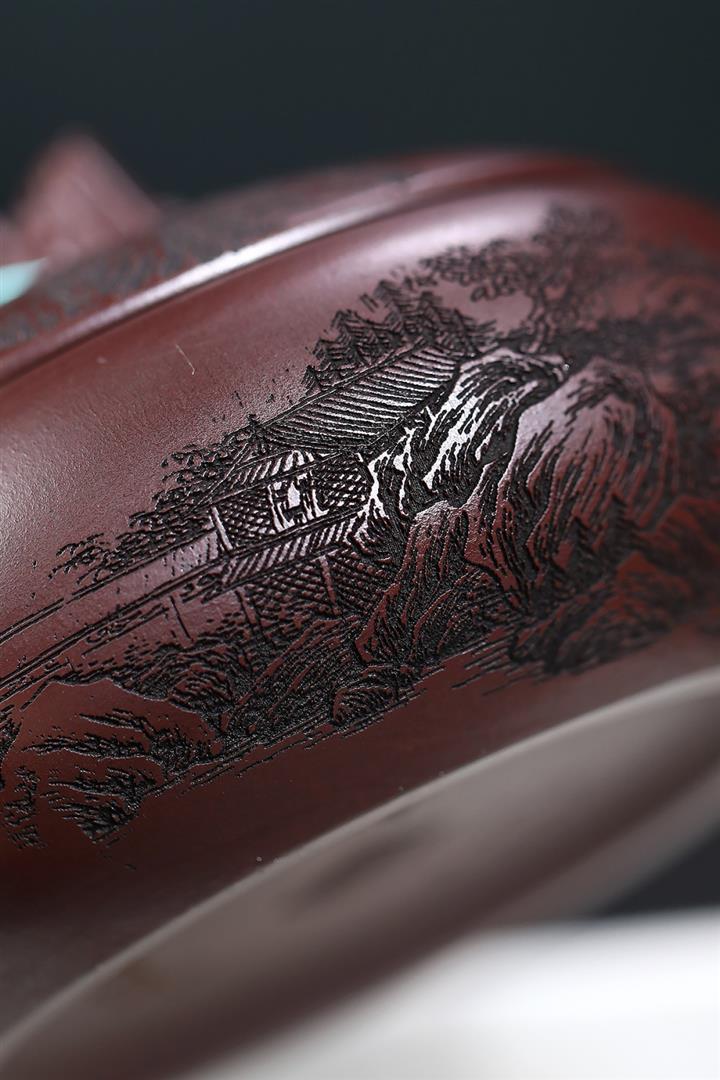 龍血砂匠心手製刻繪漢瓦紫砂壺POT6472