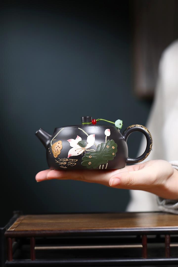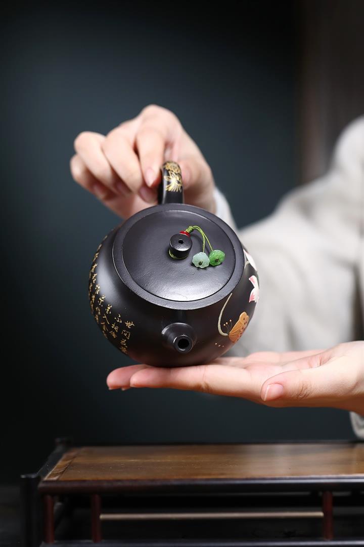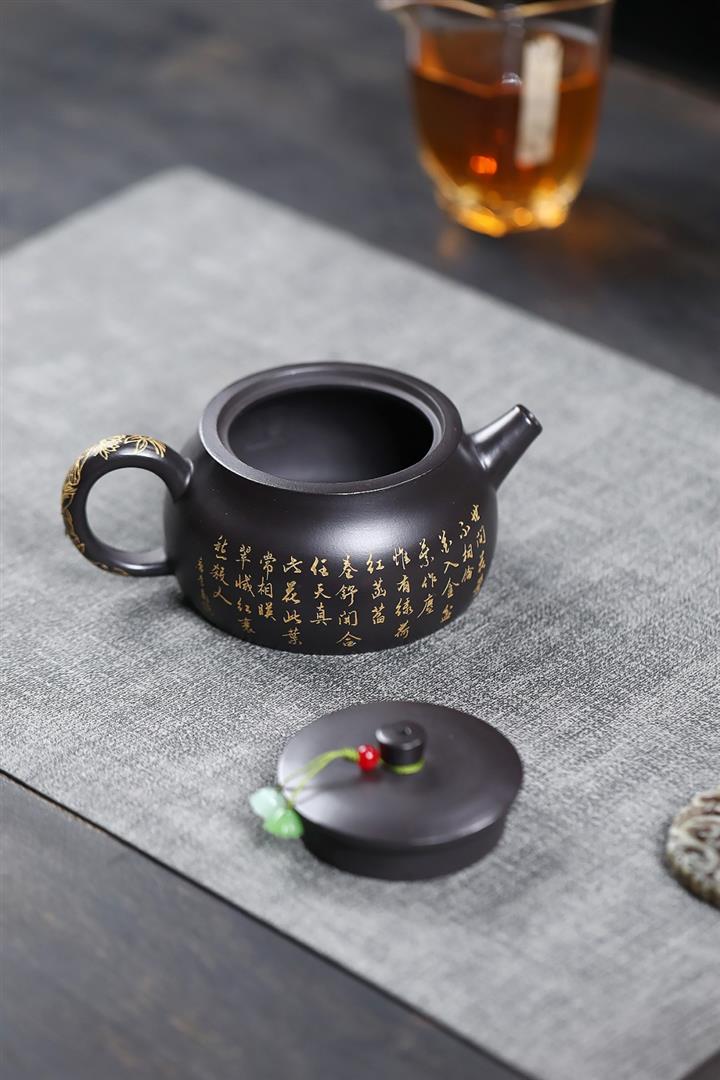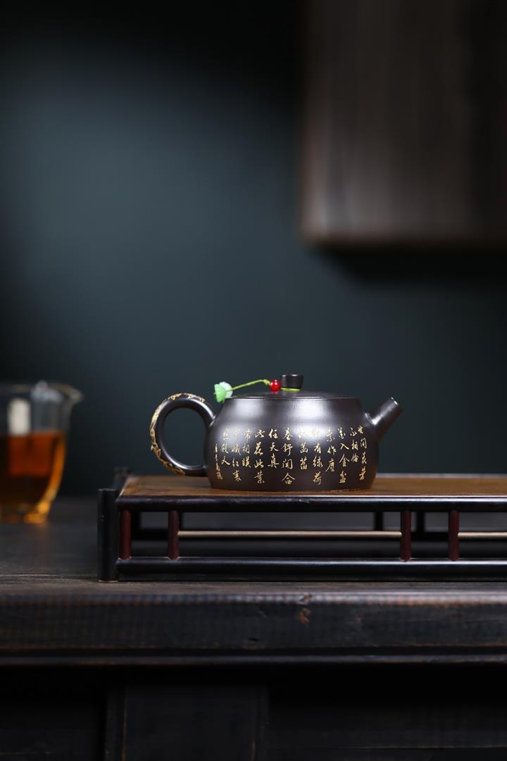 紫砂壺名家老紫泥刻繪周盤壺POT4009