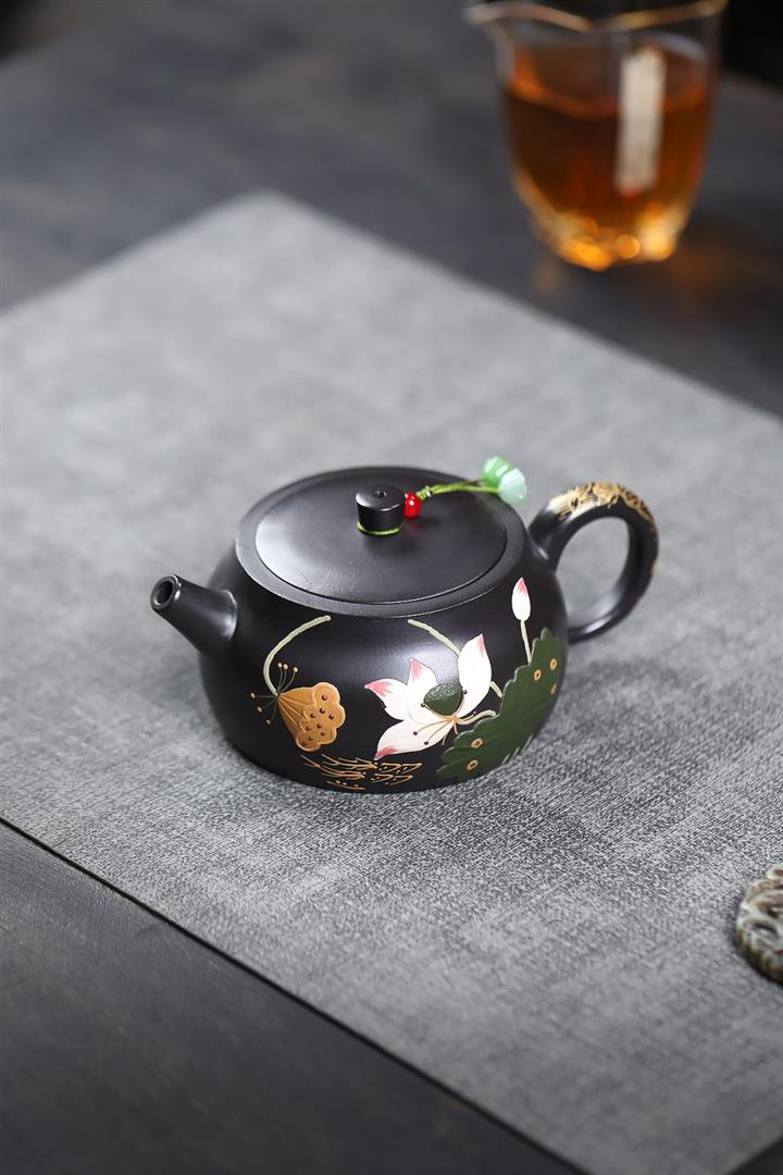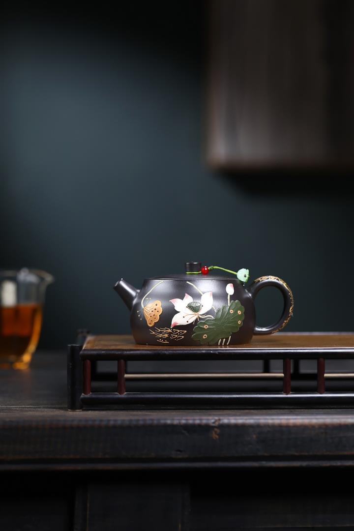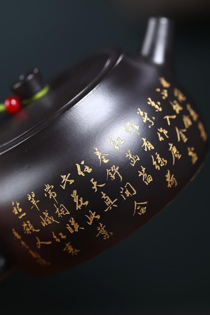 260cc原礦黑朱泥金縷井欄茶壺POT9054