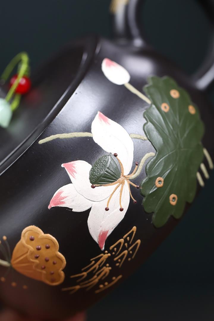 紫砂壺全純手工泥繪喜上眉梢泡茶壺原礦紫泥POT4012