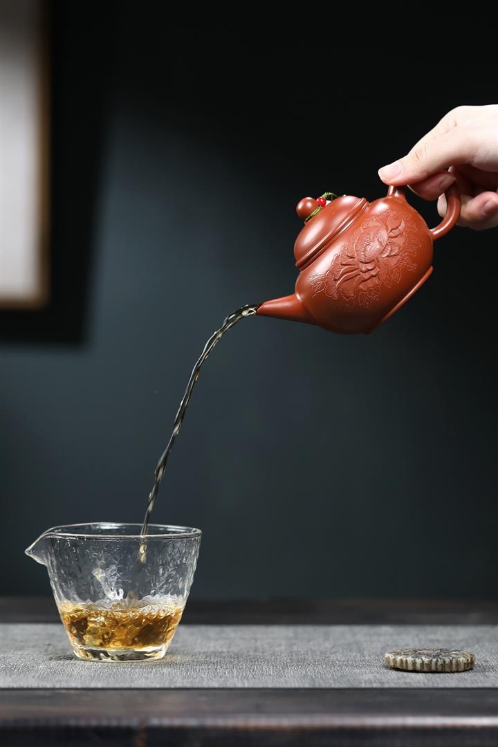 【泥料特點】砂土氣重,似淳實農民,日久使用,漸露鋒芒,養成變化,溫潤莊重。紫砂是壹種雙重氣孔結構的多孔性材質,氣孔微細,密度高。用紫砂壺沏茶,不失原味,且香不渙散,得茶之真香真味。紫砂使用越久,壺身色澤越發光亮照人,氣韻溫雅。紫砂壺長久使用器身會因撫摸擦拭,變得越發溫潤光澤。