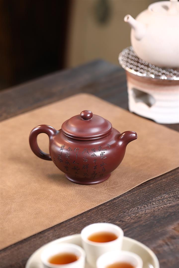 【泥料特點】砂土氣重,似淳實農民,日久使用,漸露鋒芒,養成變化,溫潤莊重。紫砂是壹種雙重氣孔結構的多孔性材質,氣孔微細,密度高。用紫砂壺沏茶,不失原味,且香不渙散,得茶之真香真味。紫砂使用越久,壺身色澤越發光亮照人,氣韻溫雅。紫砂壺長久使用器身會因撫摸擦拭,變得越發溫潤光澤。