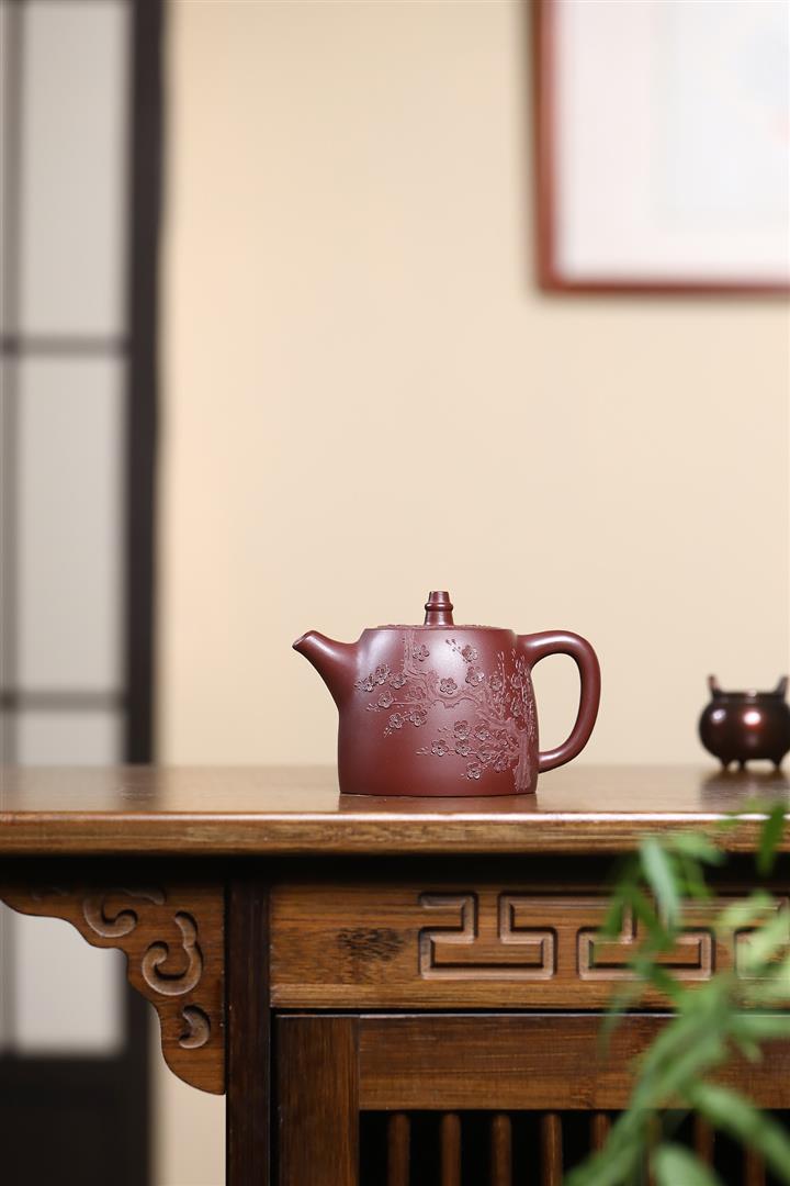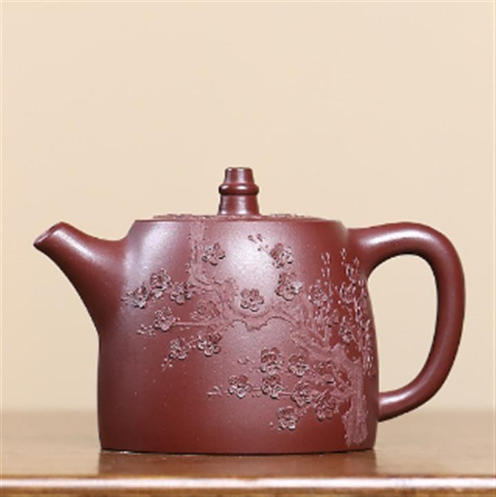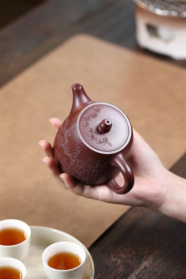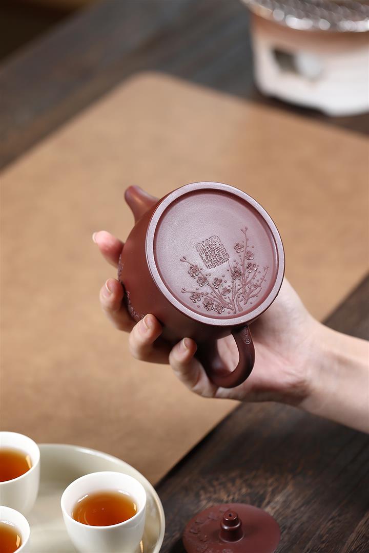 【泥料特點】砂土氣重,似淳實農民,日久使用,漸露鋒芒,養成變化,溫潤莊重。紫砂是壹種雙重氣孔結構的多孔性材質,氣孔微細,密度高。用紫砂壺沏茶,不失原味,且香不渙散,得茶之真香真味。紫砂使用越久,壺身色澤越發光亮照人,氣韻溫雅。紫砂壺長久使用器身會因撫摸擦拭,變得越發溫潤光澤。
