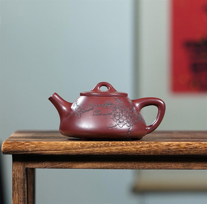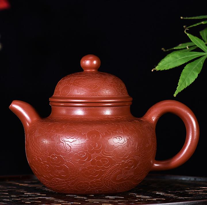 220cc原礦龍血砂刻梅花茶壺POT8902