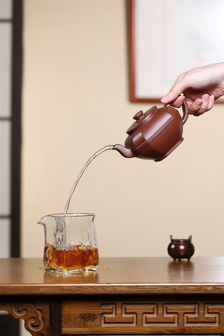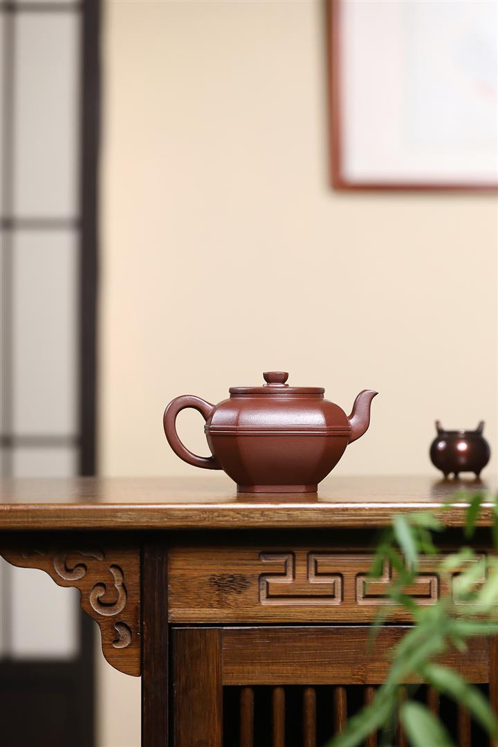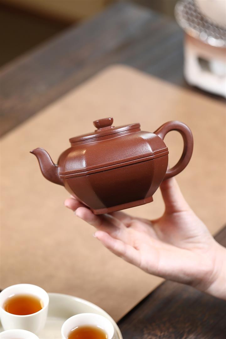 【泥料特點】砂土氣重,似淳實農民,日久使用,漸露鋒芒,養成變化,溫潤莊重。紫砂是壹種雙重氣孔結構的多孔性材質,氣孔微細,密度高。用紫砂壺沏茶,不失原味,且香不渙散,得茶之真香真味。紫砂使用越久,壺身色澤越發光亮照人,氣韻溫雅。紫砂壺長久使用器身會因撫摸擦拭,變得越發溫潤光澤。