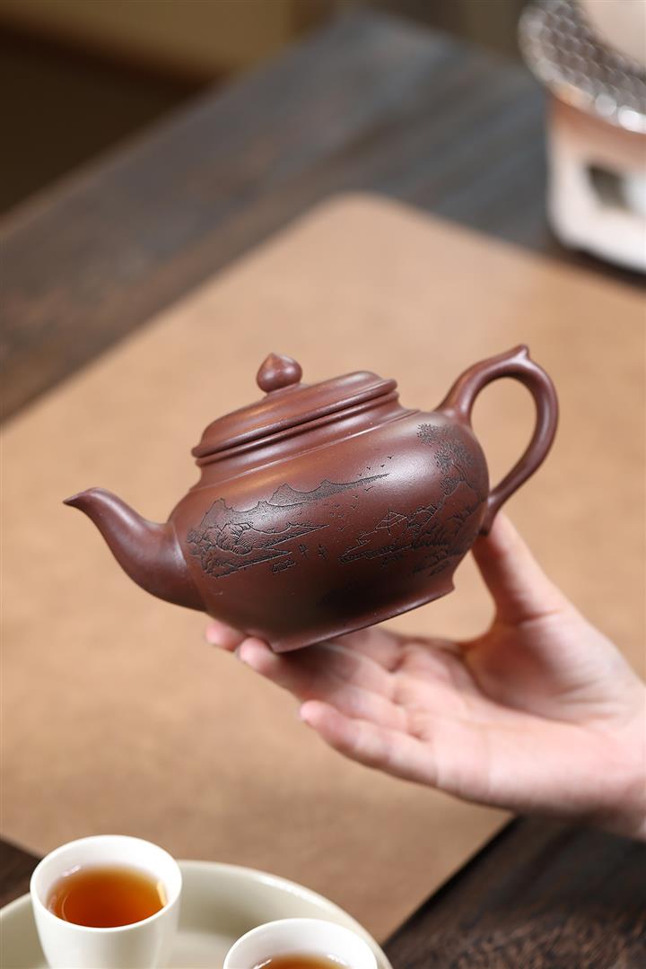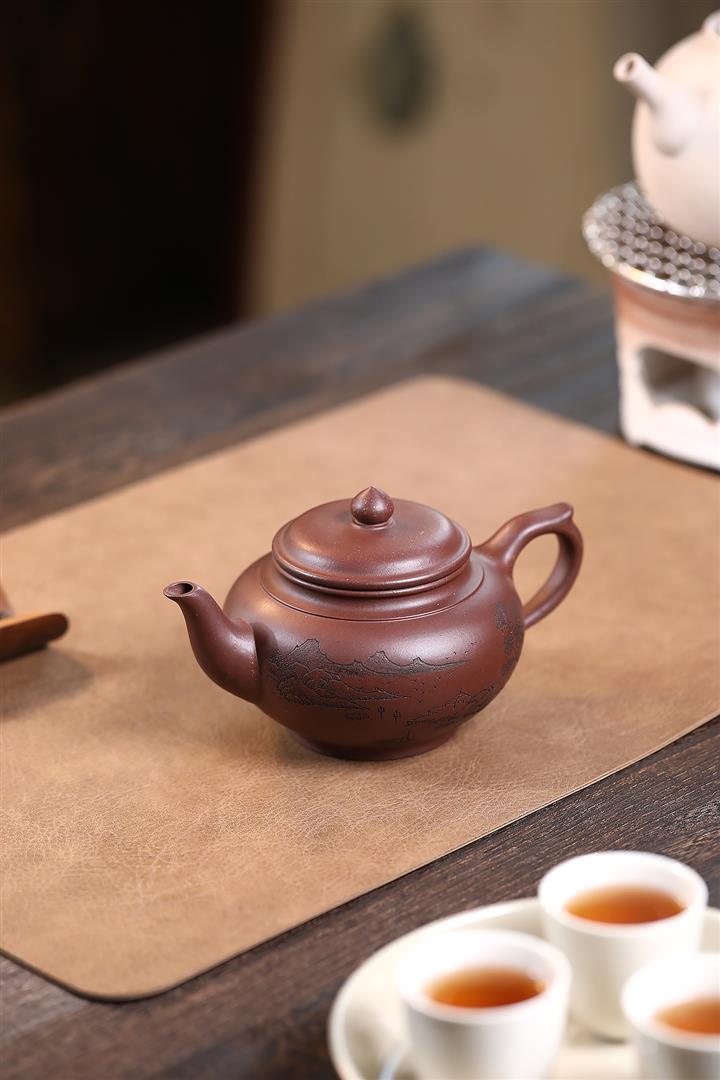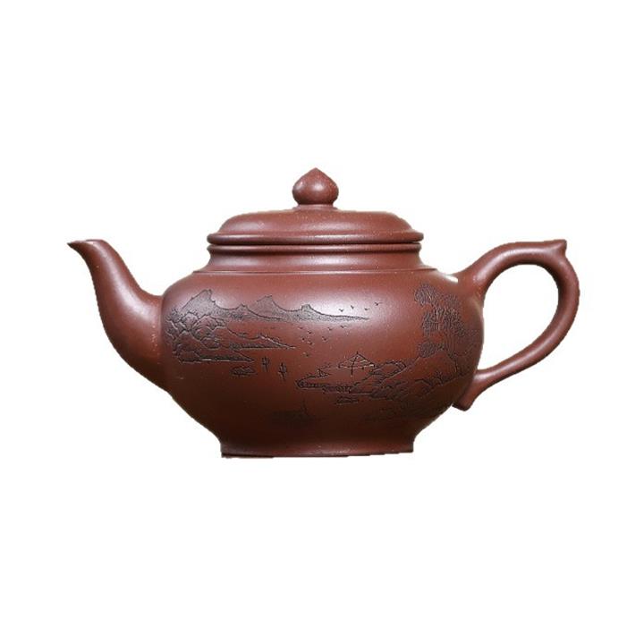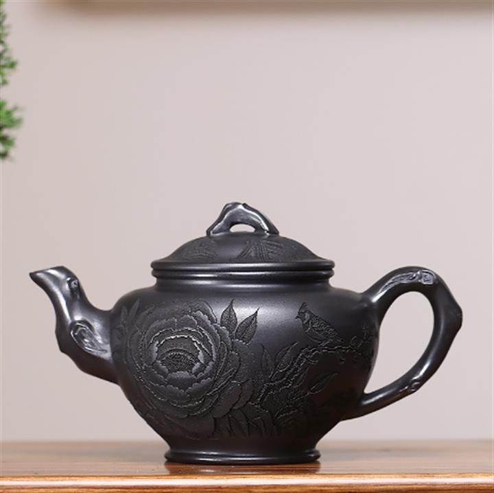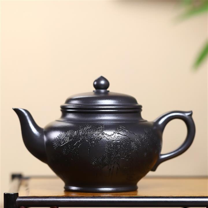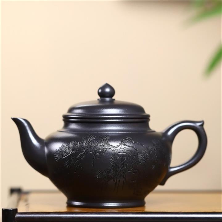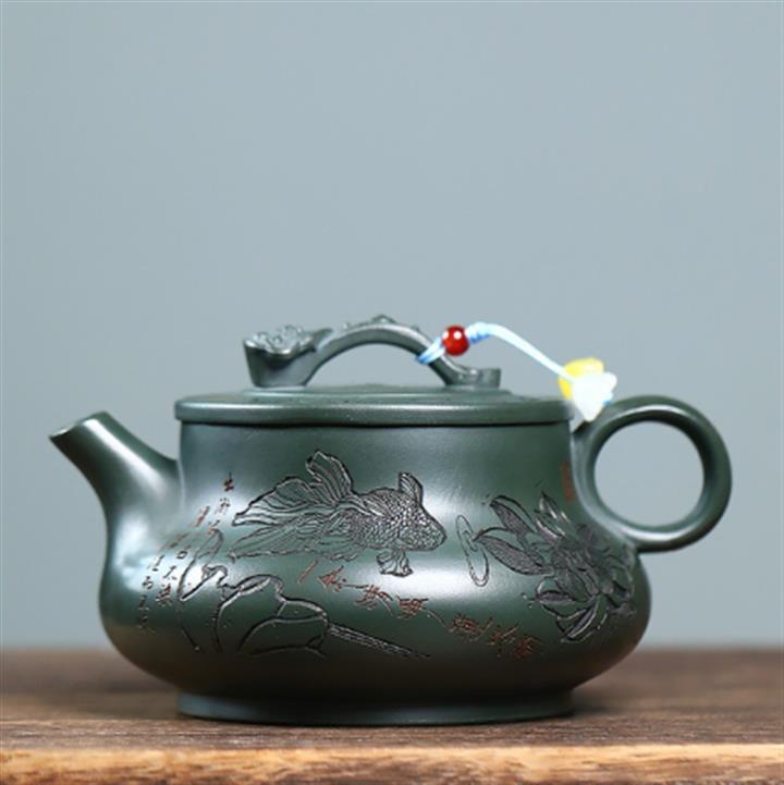 330cc原礦墨綠泥滿刻如意清荷茶壺POT8301
