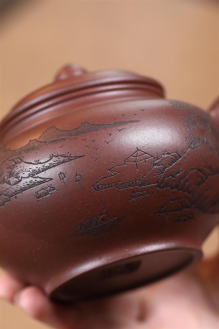 350cc原礦墨綠泥通身刻竹之清雅茶壺POT8302