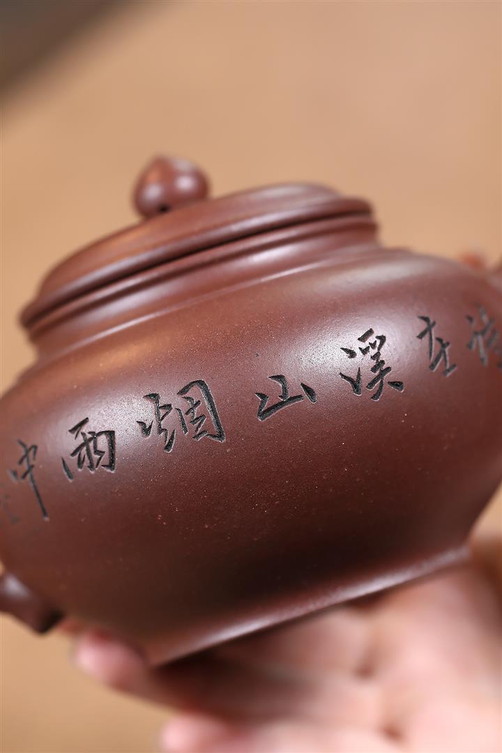 【作品介紹】此款壺形線條流暢,壺把,壺嘴,壺身壹氣呵成栩栩如生,是收藏把玩的好壺,泥料色澤古樸典雅,日久使用,漸露鋒芒,養成變化快,溫潤莊重,用其泡茶,使用的年代久,壺身就溫潤,泡出來的茶湯也就醇郁芳馨。