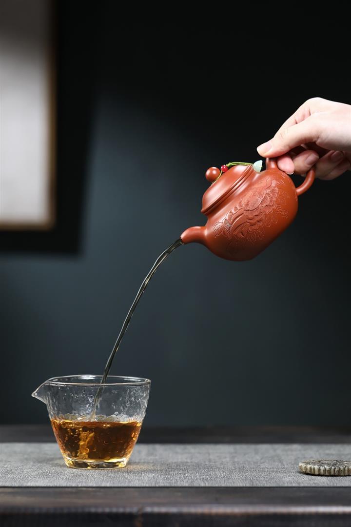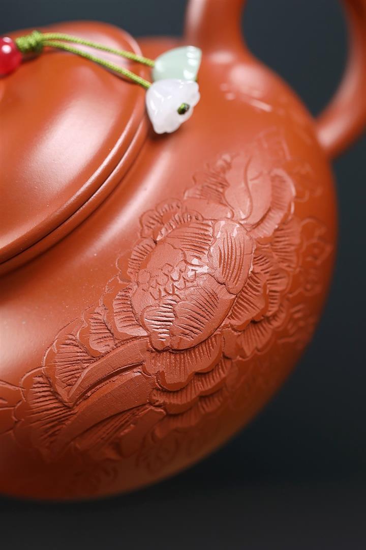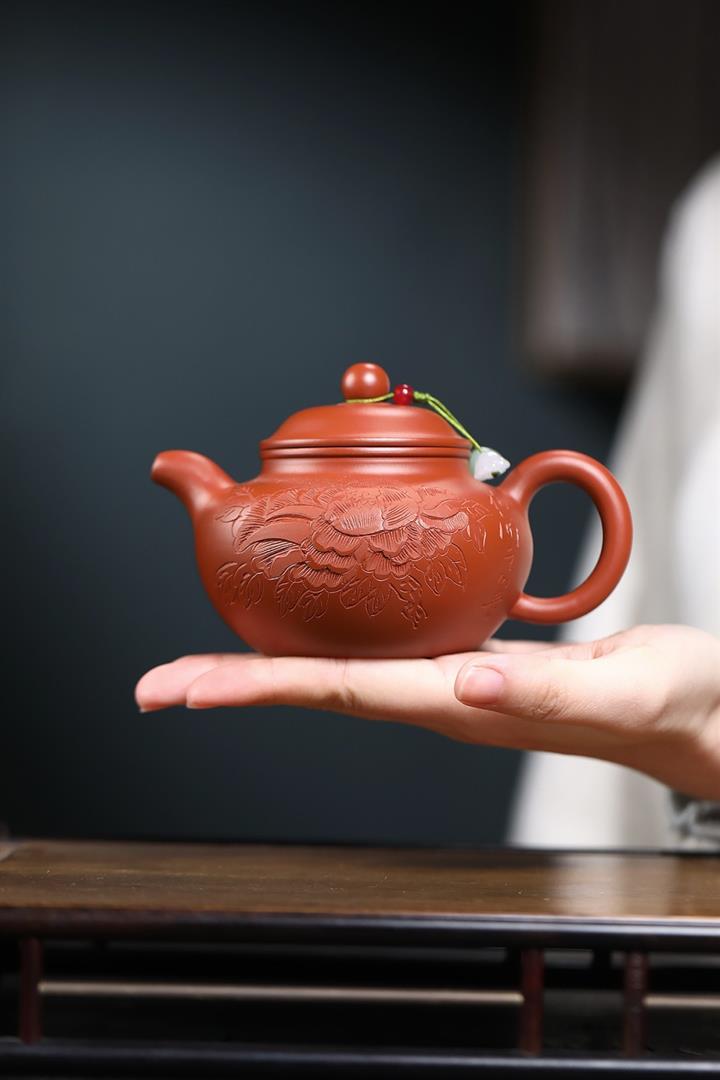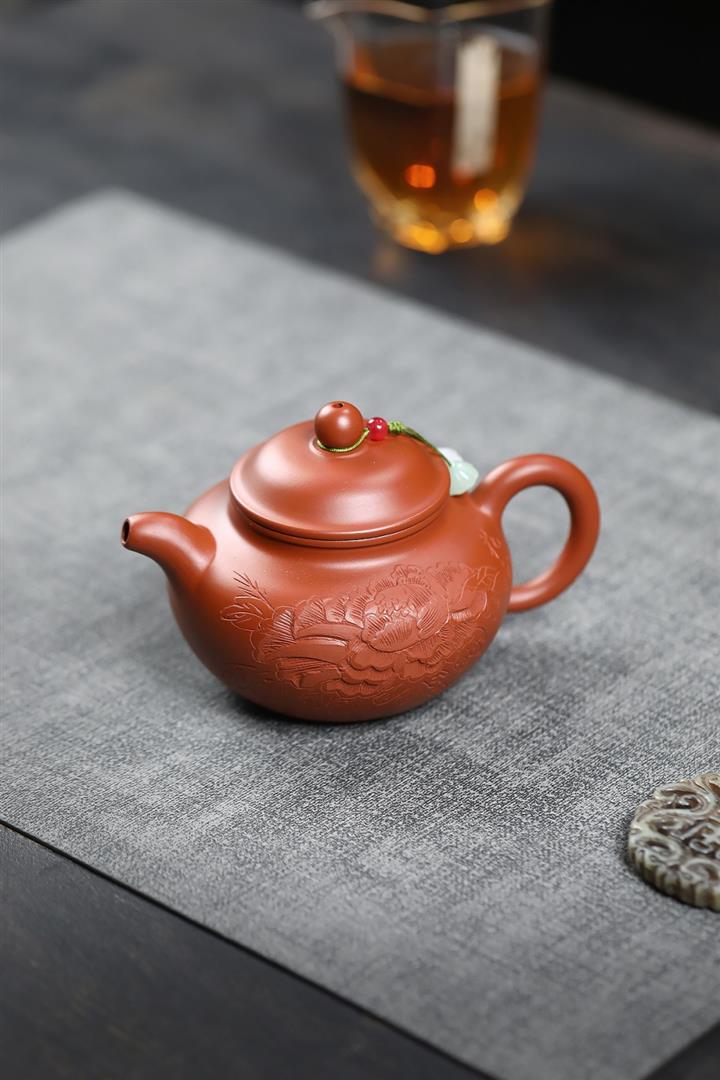 200cc原礦朱泥牡丹富貴掇只茶壺POT9078