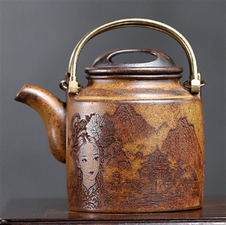 德鐘原礦豆沙青手工琢砂刻畫POT4231