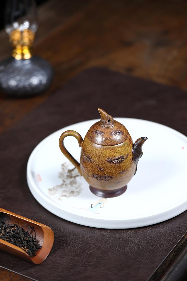 【泥料特點】砂土氣重,似淳實農民,日久使用,漸露鋒芒,養成變化,溫潤莊重。紫砂是壹種雙重氣孔結構的多孔性材質,氣孔微細,密度高。用紫砂壺沏茶,不失原味,且香不渙散,得茶之真香真味。紫砂使用越久,壺身色澤越發光亮照人,氣韻溫雅。紫砂壺長久使用器身會因撫摸擦拭,變得越發溫潤光澤。