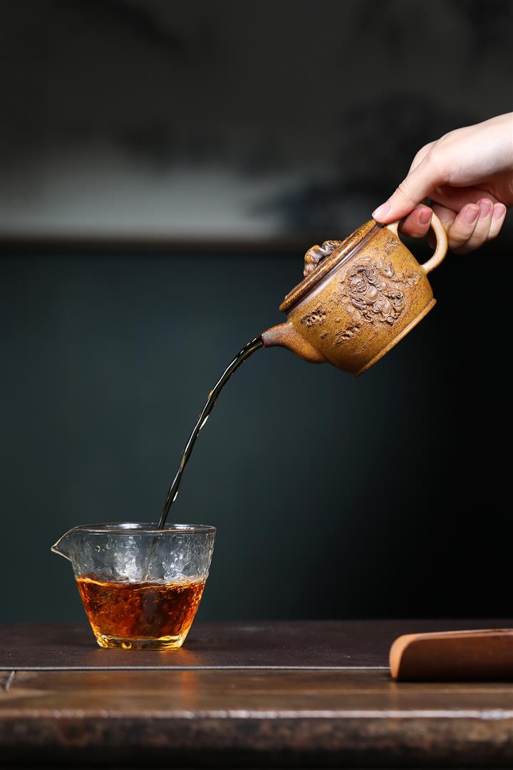 【泥料特點】砂土氣重,似淳實農民,日久使用,漸露鋒芒,養成變化,溫潤莊重。紫砂是壹種雙重氣孔結構的多孔性材質,氣孔微細,密度高。用紫砂壺沏茶,不失原味,且香不渙散,得茶之真香真味。紫砂使用越久,壺身色澤越發光亮照人,氣韻溫雅。紫砂壺長久使用器身會因撫摸擦拭,變得越發溫潤光澤。
