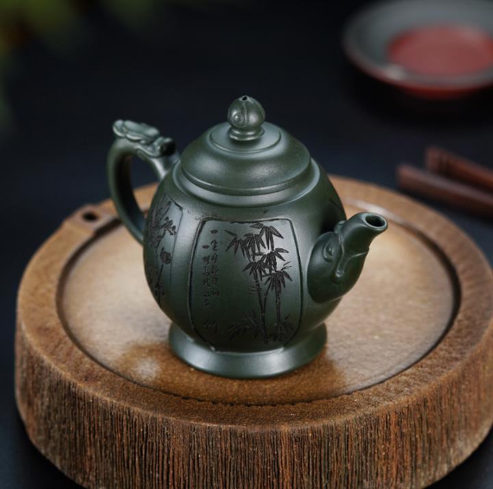 380cc原礦紫砂底槽清竹報平安茶壺POT8901