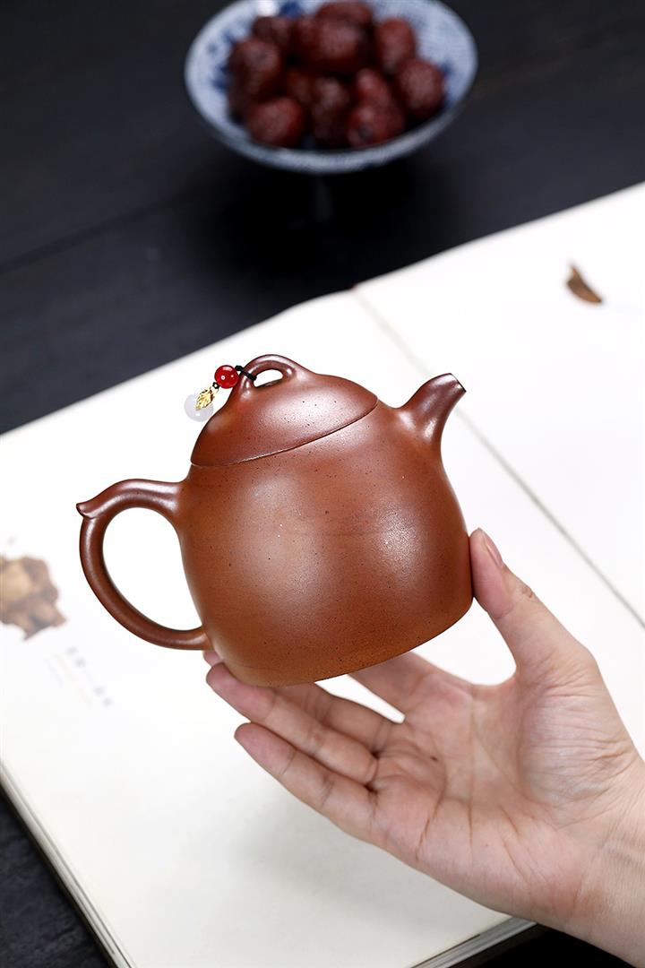 【作品介紹】此款壺形線條流暢,壺把,壺嘴,壺身壹氣呵成栩栩如生,是收藏把玩的好壺,泥料色澤古樸典雅,日久使用,漸露鋒芒,養成變化快,溫潤莊重,用其泡茶,使用的年代久,壺身就溫潤,泡出來的茶湯也就醇郁芳馨。