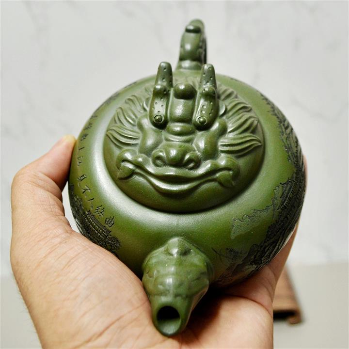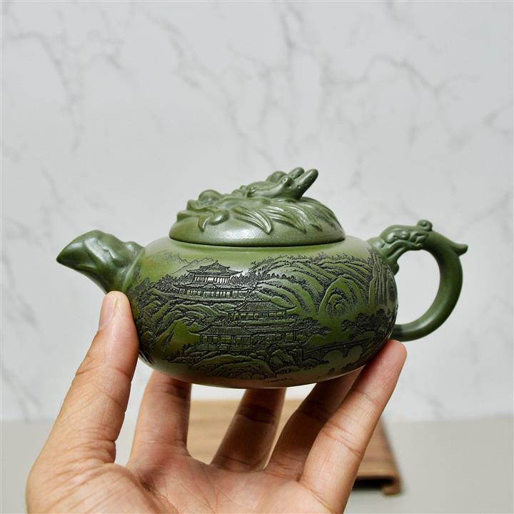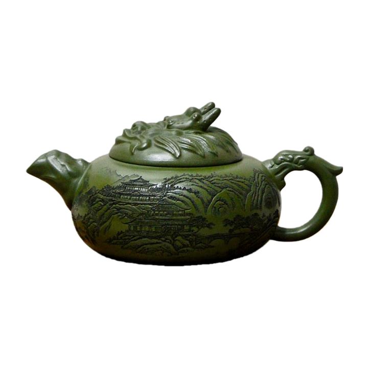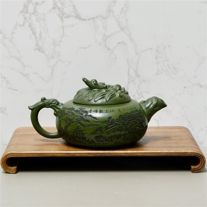250cc原礦綠泥山水獨占鰲頭泡茶壺POT9156