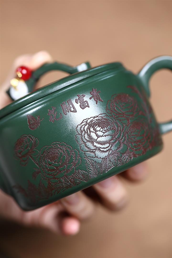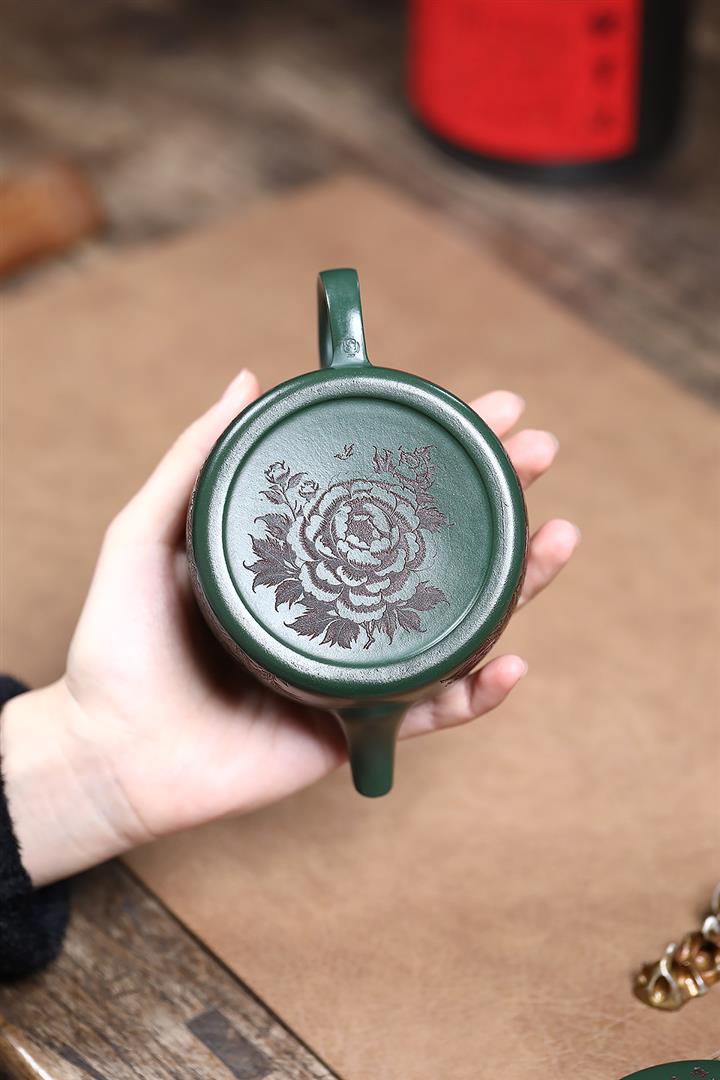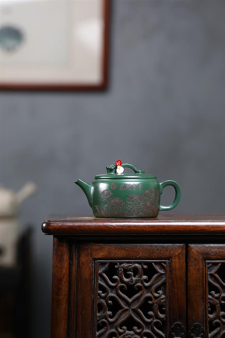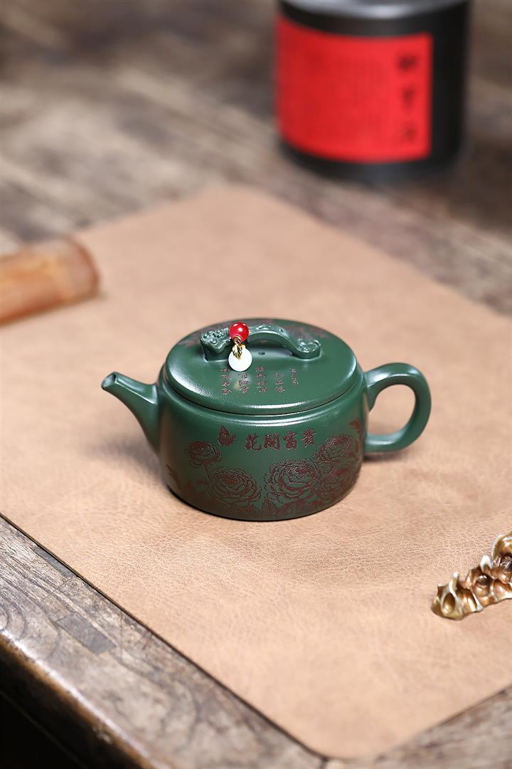 200cc原礦綠泥牡丹如意漢瓦泡茶壺POT9158