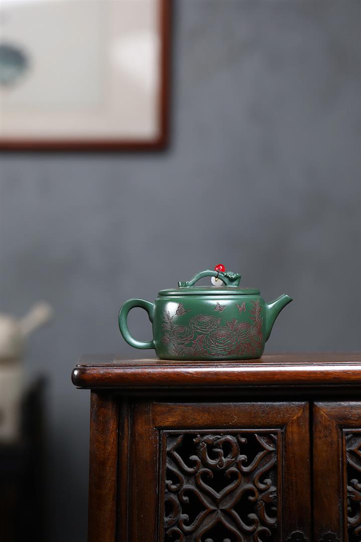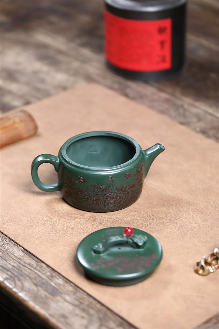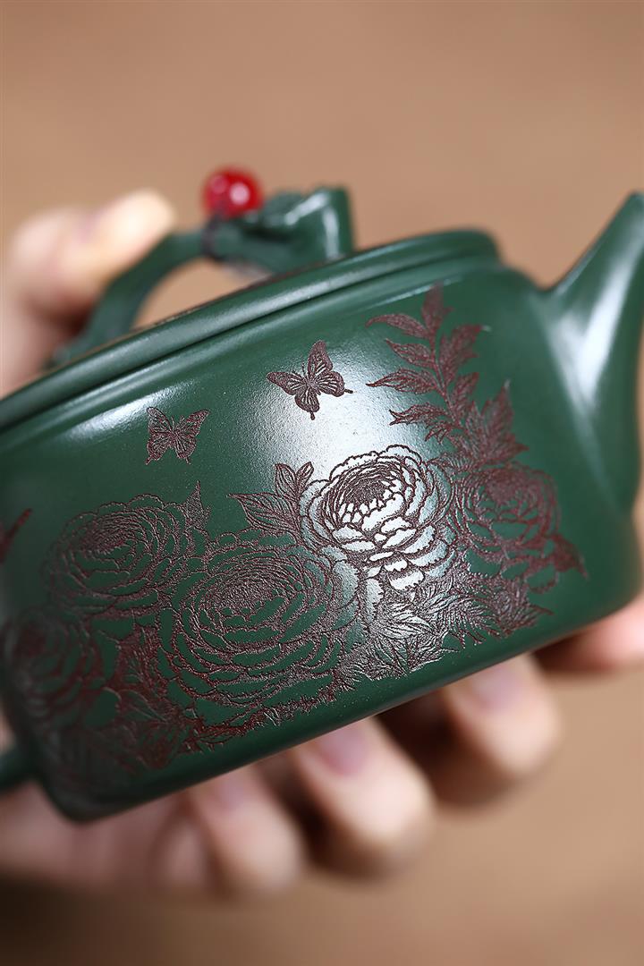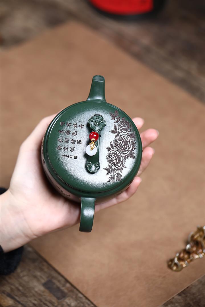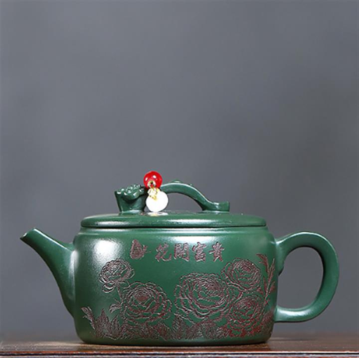 200cc原礦綠泥牡丹如意漢瓦泡茶壺POT9158