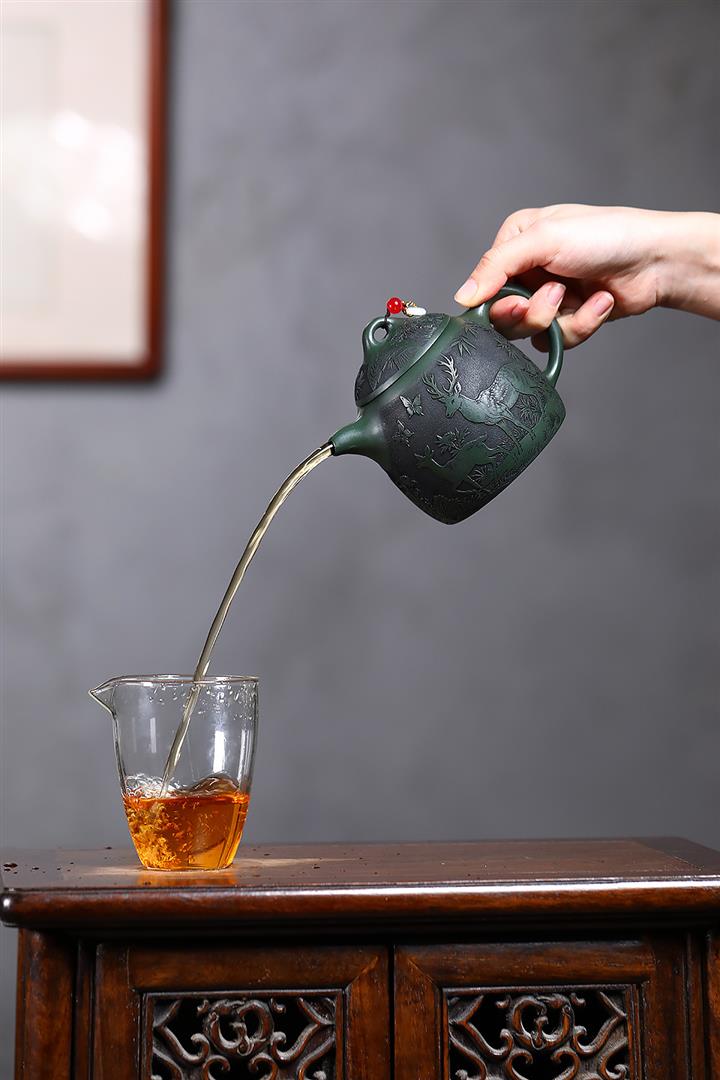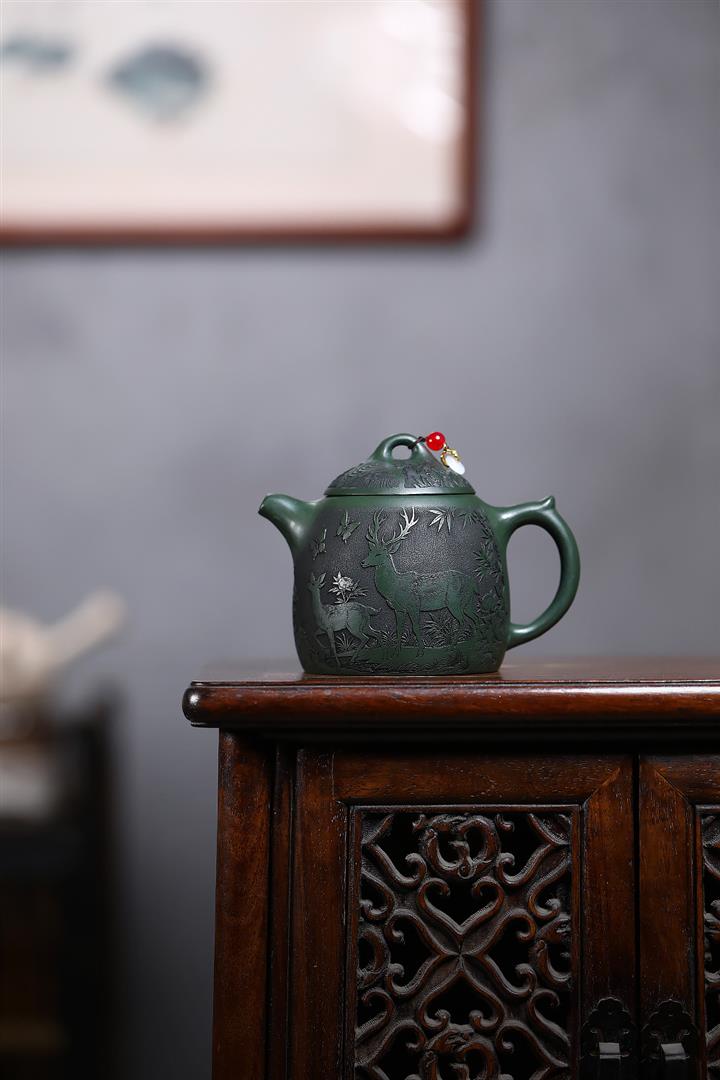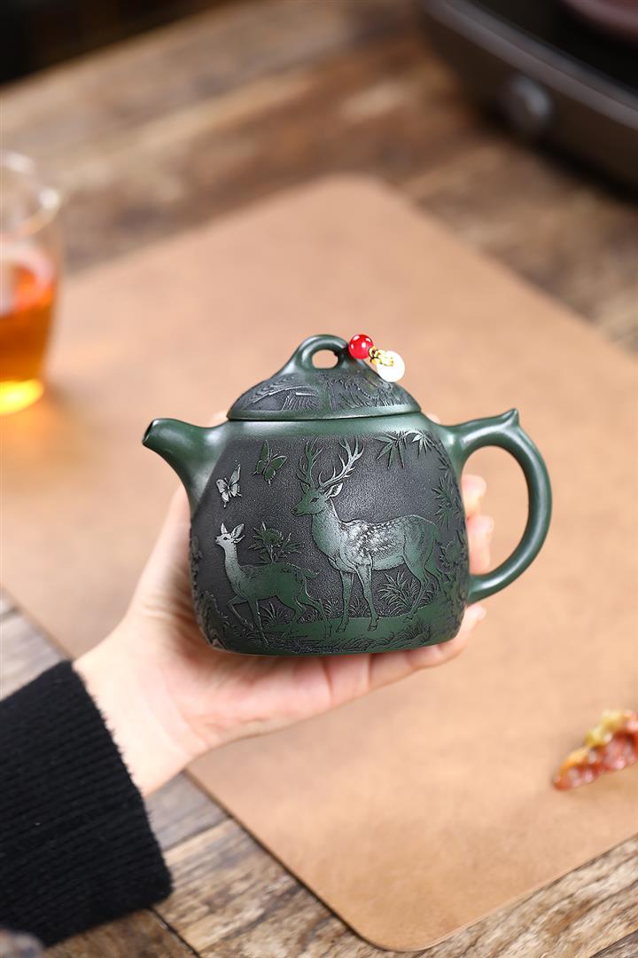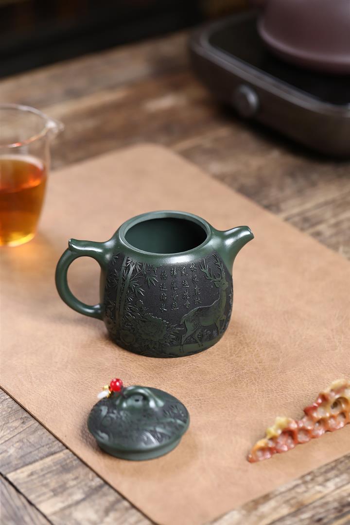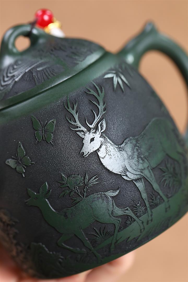 360cc原礦墨綠泥福鹿秦權茶壺POT9172