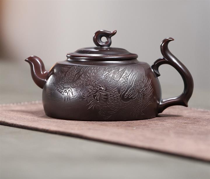 【作品介紹】此款壺形線條流暢,壺把,壺嘴,壺身壹氣呵成栩栩如生,是收藏把玩的好壺,泥料色澤古樸典雅,日久使用,漸露鋒芒,養成變化快,溫潤莊重,用其泡茶,使用的年代久,壺身就溫潤,泡出來的茶湯也就醇郁芳馨。