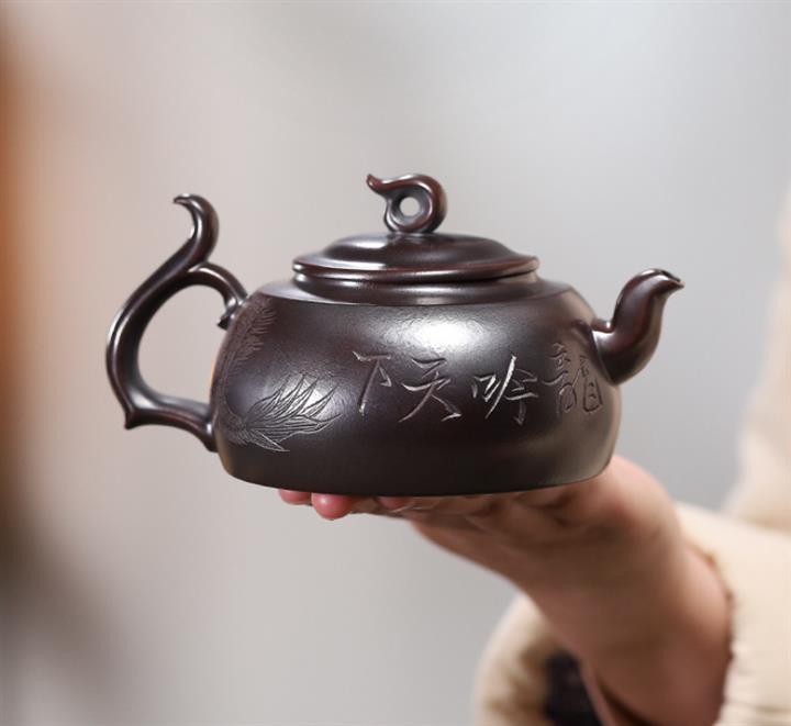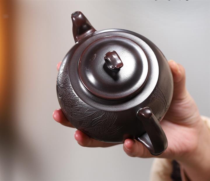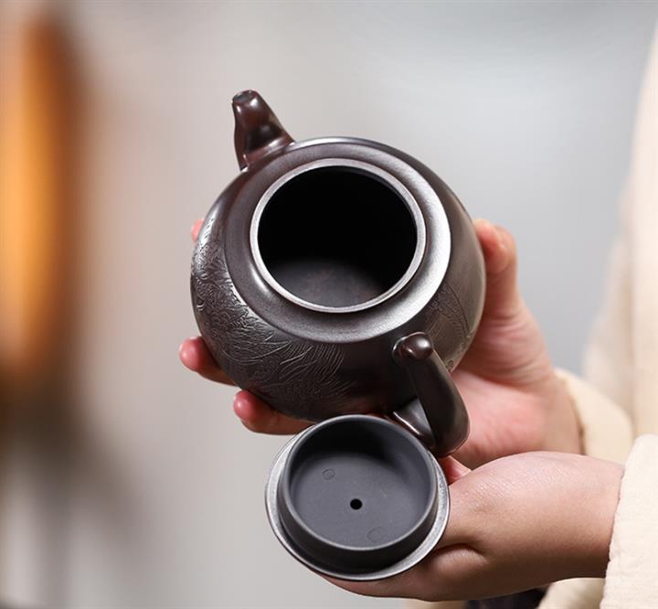宮燈紫砂壺原礦黑金剛匠心手製茶壺茶具POT3997